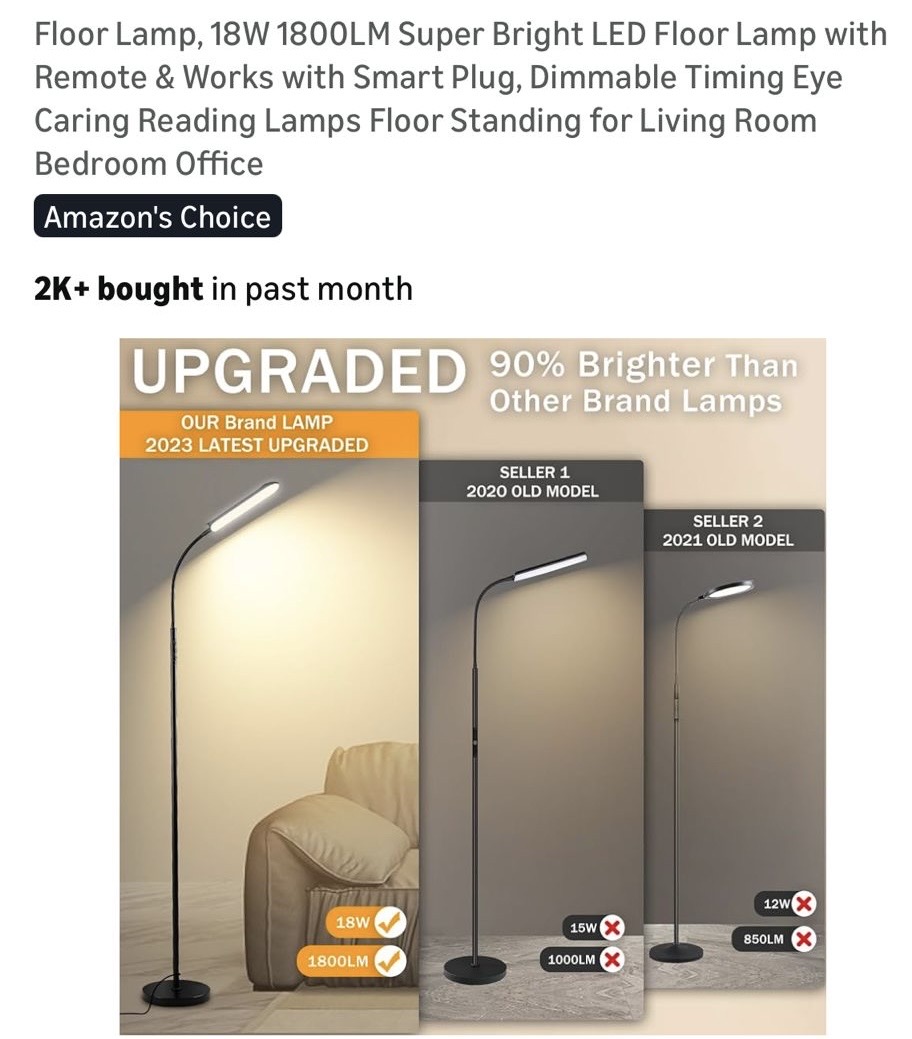 Floor Lamp, 18W 1800LM Super Bright LED Floor Lamp with Remote & Works with Smart Plug #K54
