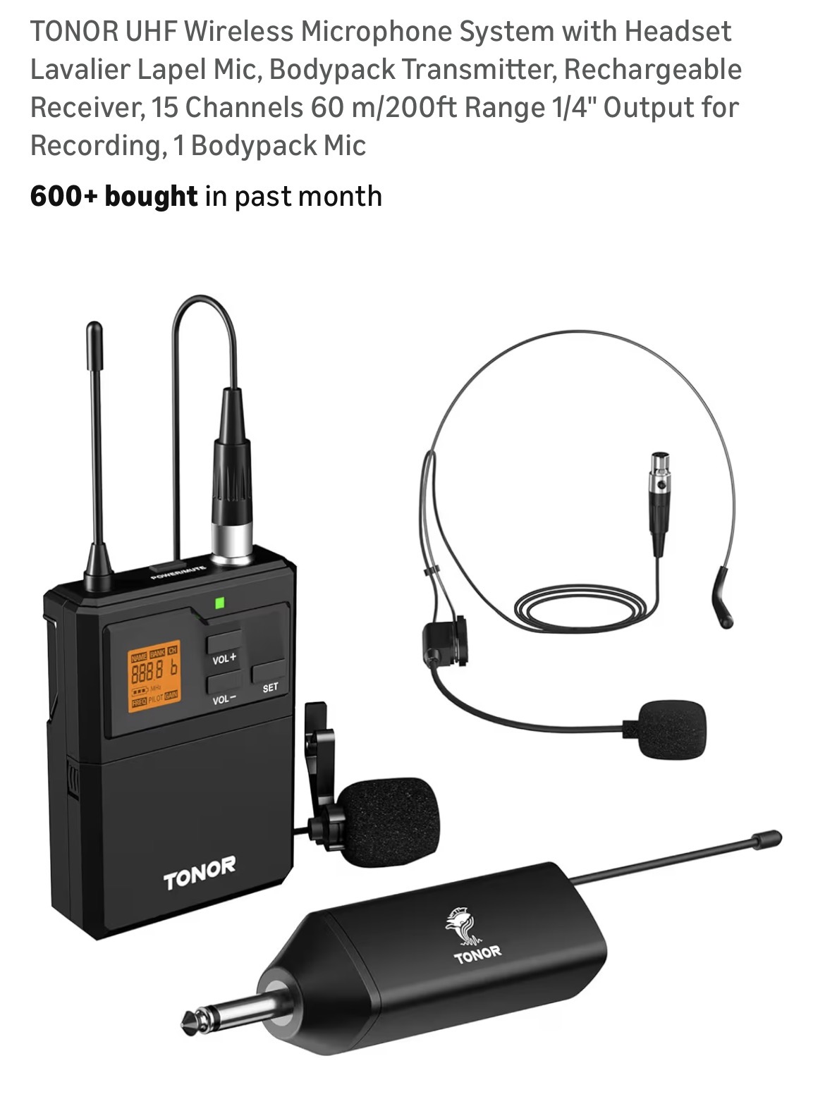 TONOR UHF Wireless Microphone System with Headset Lavalier Lapel Mic #D108