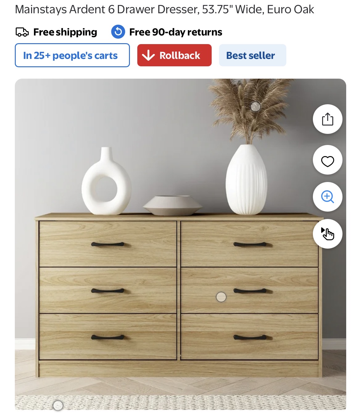 Mainstays Ardent 6 Drawer Dresser, 53.75" Wide #D186