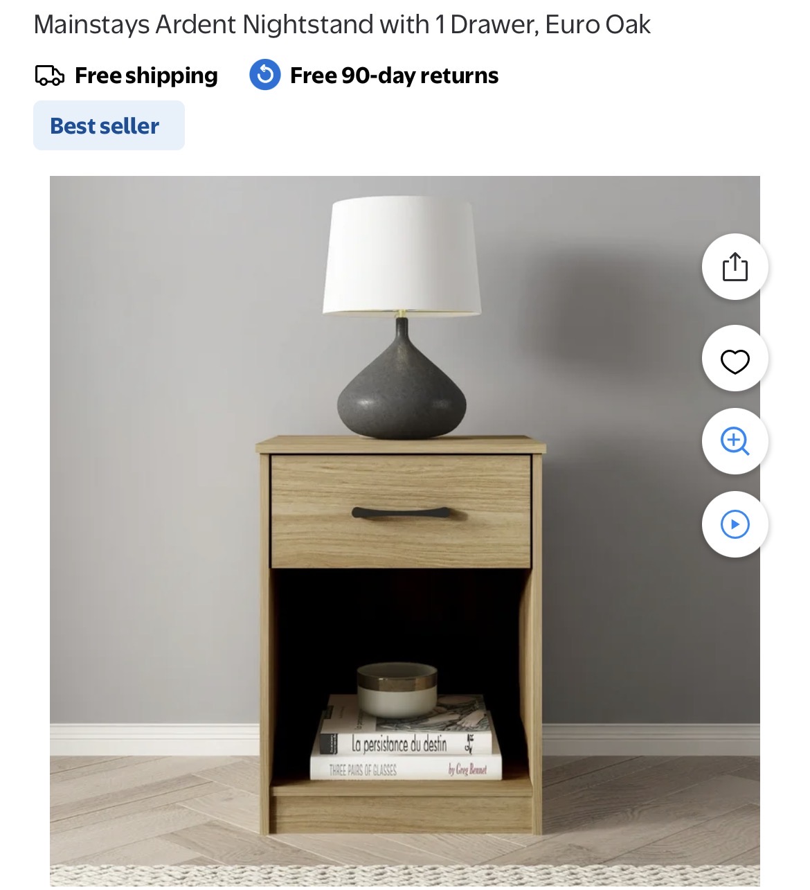 Mainstays Ardent Nightstand with 1 Drawer #D190