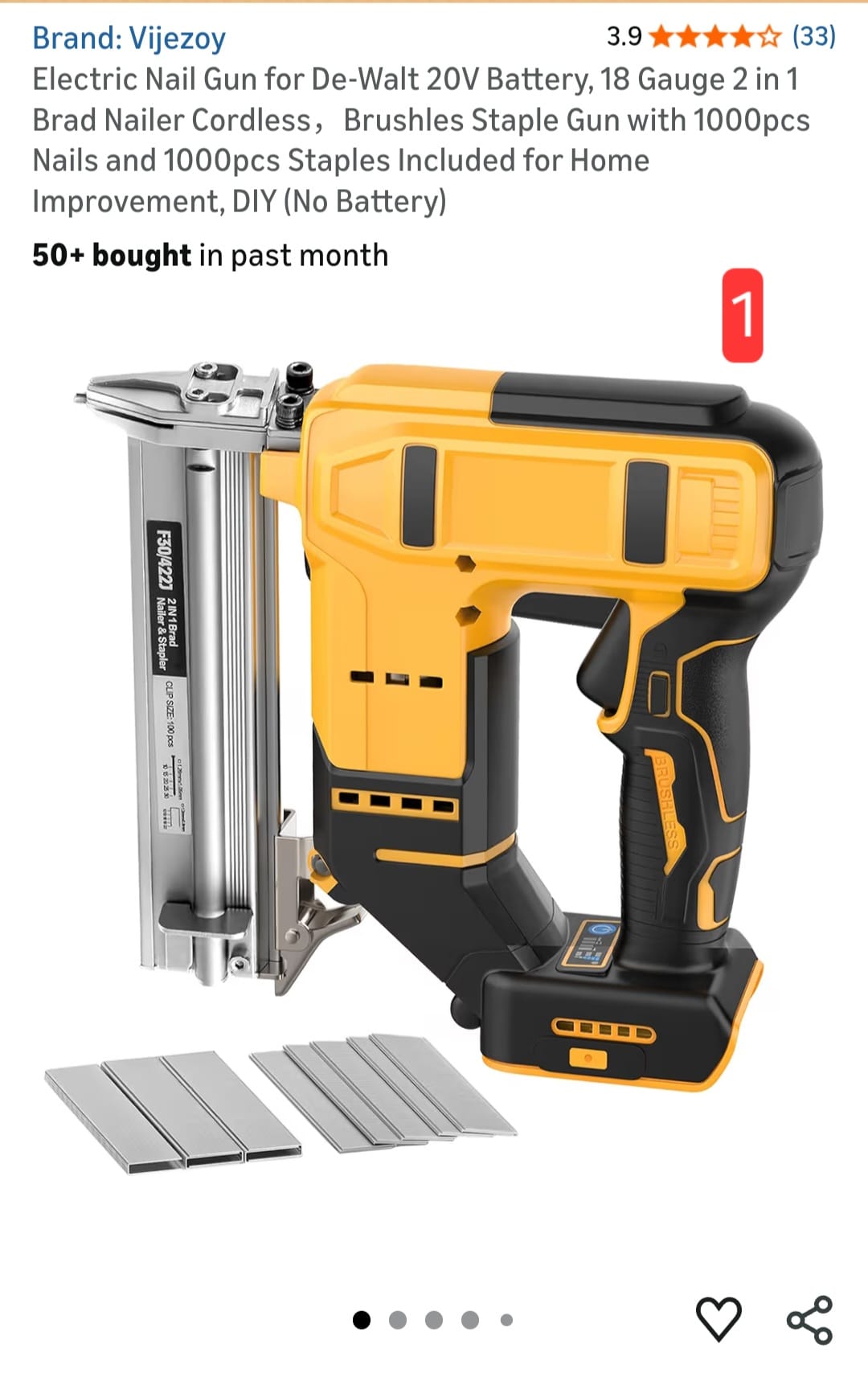 Electric Nail Gun for De-Walt 20V Battery. 1