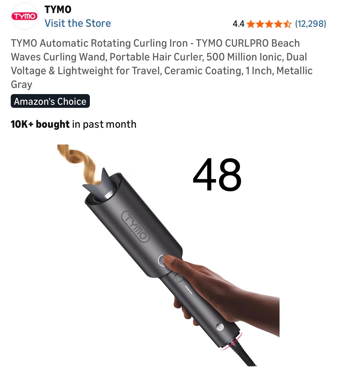 TYMO Automatic Rotating Curling Iron - ΤΥΜΟ CURLPRO Beach Waves Curling Wand, Portable Hair Curler, 500 Million Ionic, Dual Voltage & Lightweight for Travel, Ceramic Coating, 1 Inch, Metallic Gray. 48