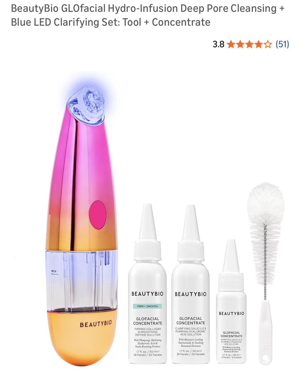BeautyBio GLOfacial Hydro-Infusion Deep Pore Cleansing + Blue LED Clarifying Set #A5