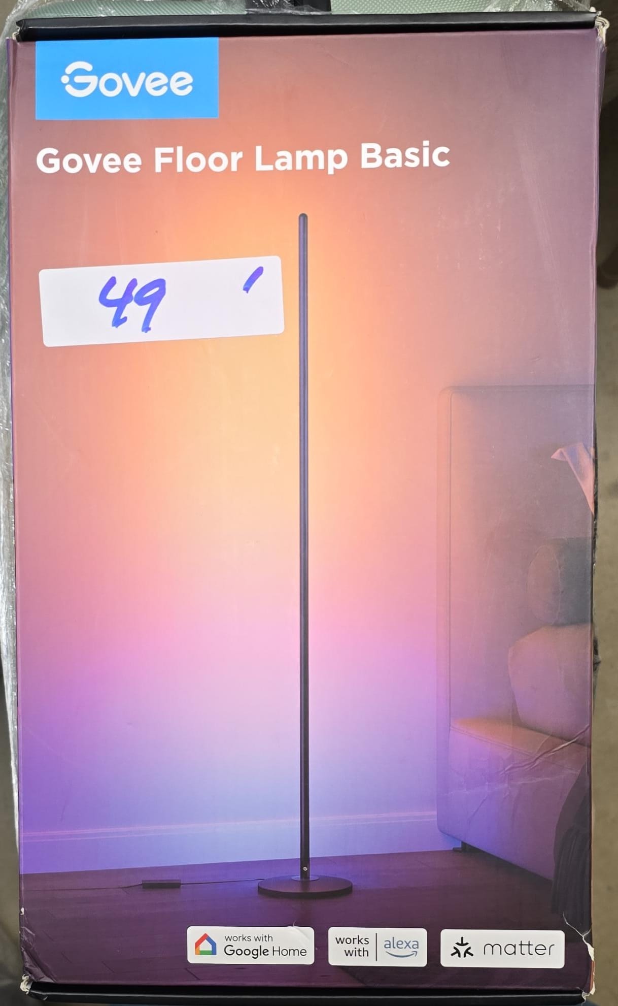 Govee RGBIC Floor Lamp Basic, 1000lm LED Corner Lamp Compatible with SmartThings, Alexa, and Matter, Modern Floor Lamp with Music Sync and 16 Million DIY Colors, Standing Lamp for Bedroom Living Room. 49