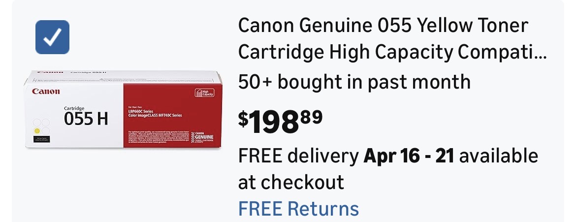 Canon Genuine 055 Yellow Toner Cartridge High Capacity Compatible with LBP664Cdw #A6