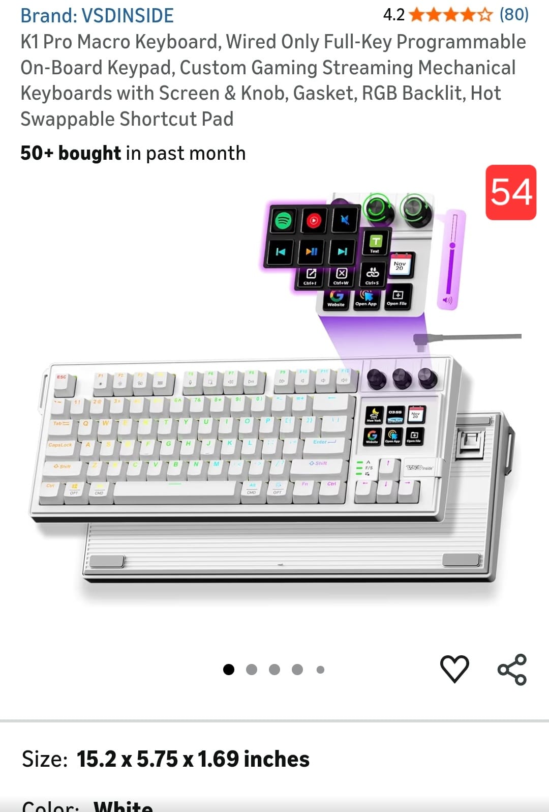 K1 Pro Macro Keyboard, Wired Only Full-Key Programmable On-Board Keypad, Custom Gaming Streaming Mechanical Keyboards with Screen & Knob, Gasket, RGB Backlit, Hot Swappable Shortcut Pad. 54