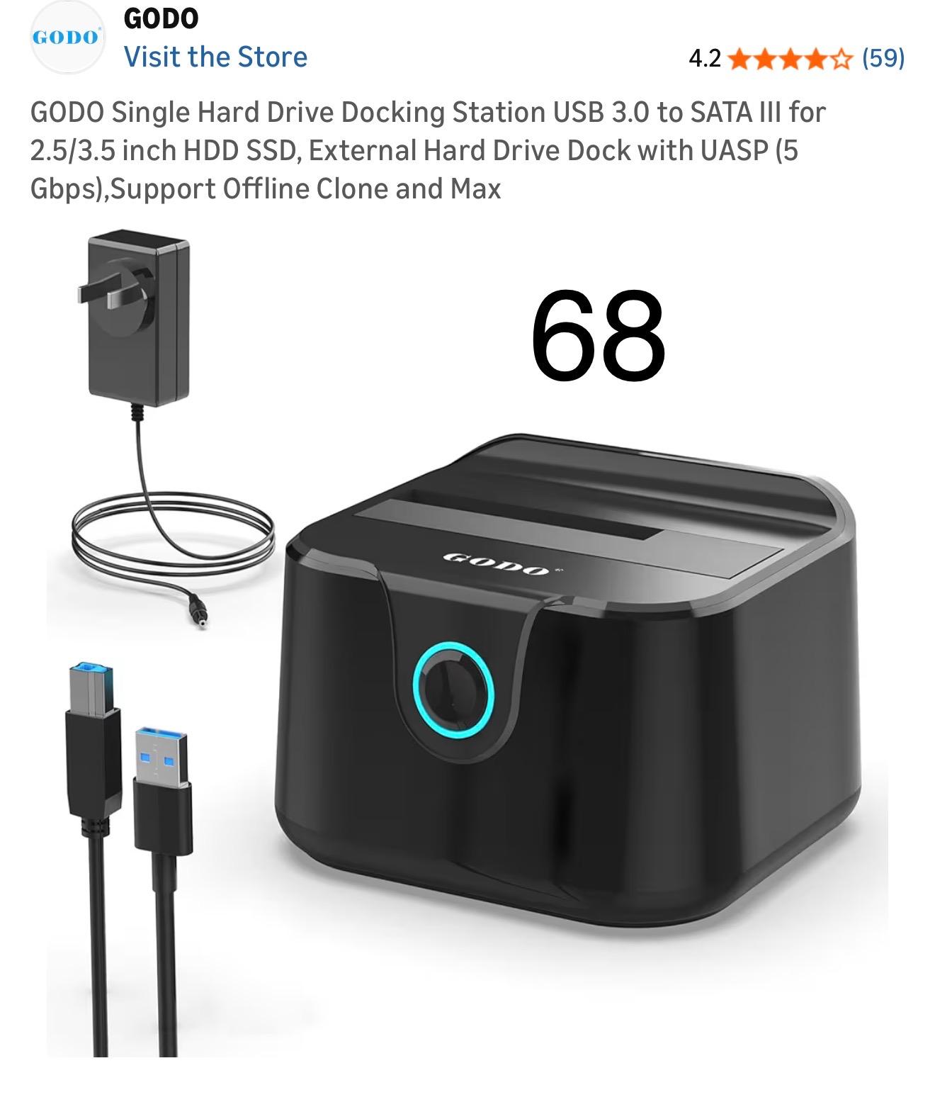 GODO Single Hard Drive Docking Station USB 3.0 to SATA III for 2.5/3.5 inch HDD SSD, External Hard Drive Dock with UASP (5 Gbps), Support Offline Clone and Max. 68