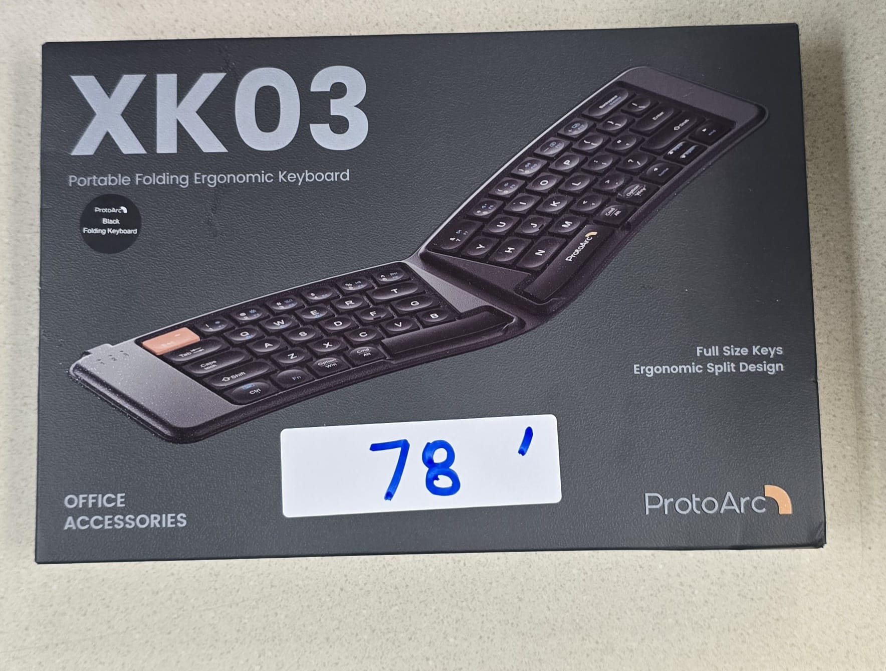 ProtoArc Ergonomic Foldable Keyboard, XK03 Split Folding Travel Bluetooth Keyboard, Ultra Slim, Portable for iPad, iPhone, Tablet, Laptop, PC. 78