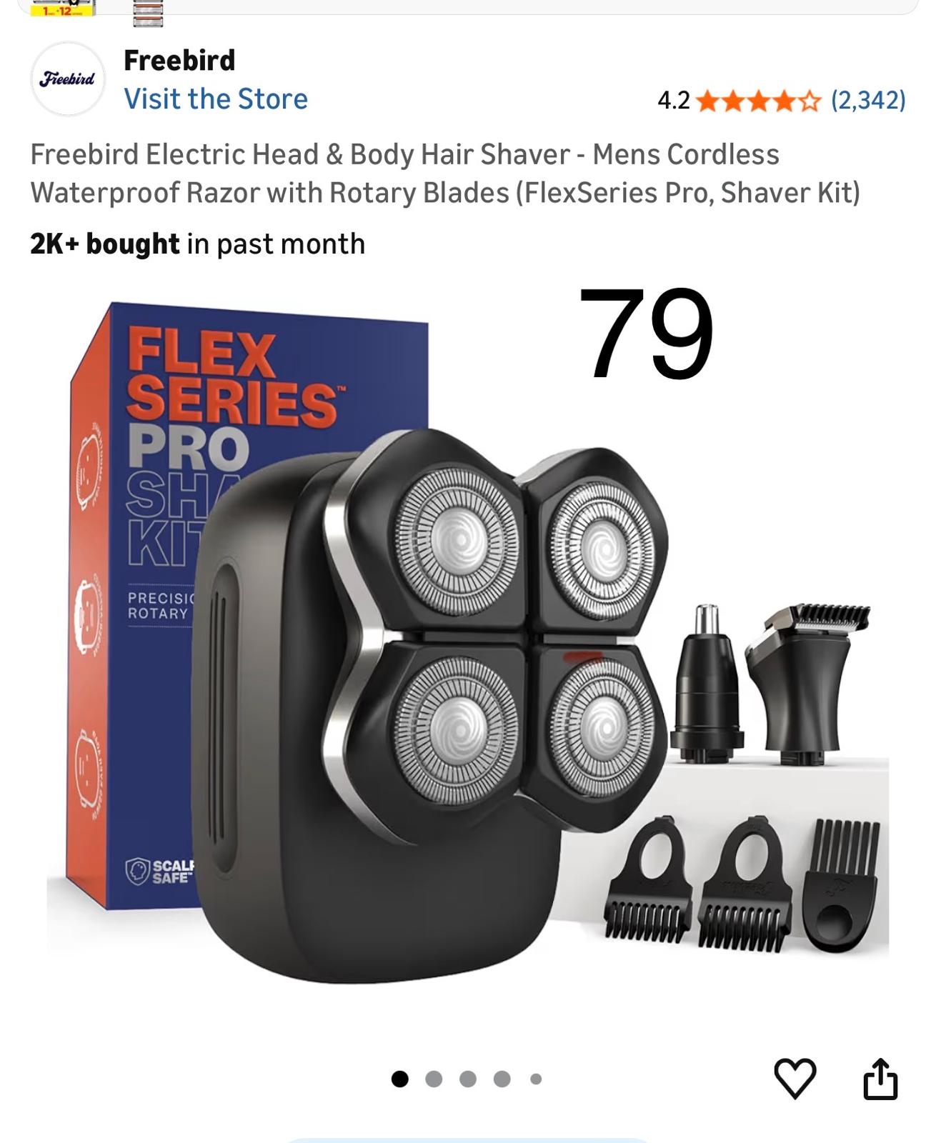 Freebird Electric Head & Body Hair Shaver - Mens Cordless Waterproof Razor with Rotary Blades (FlexSeries Pro, Shaver Kit). 79