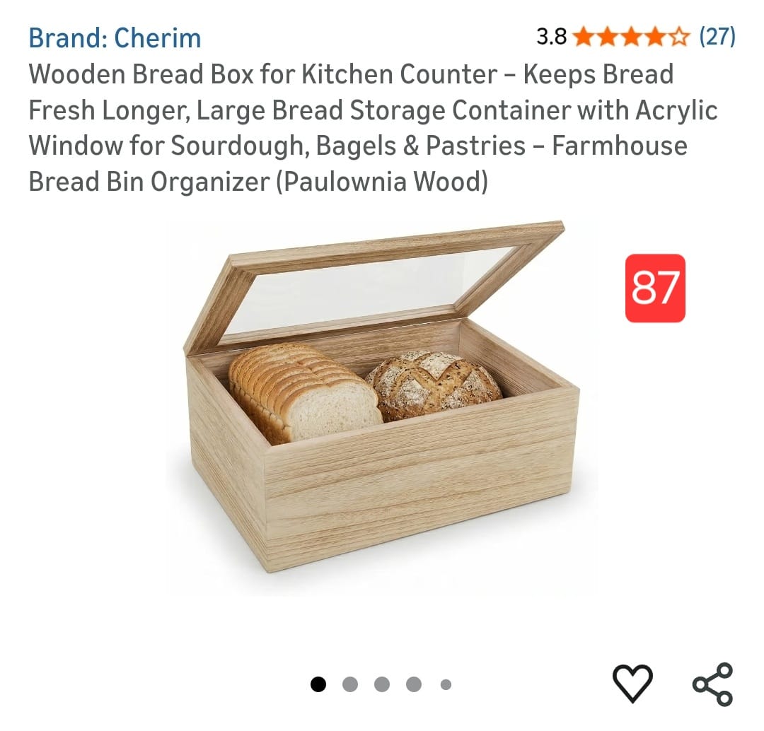 Wooden Bread Box for Kitchen Counter - Keeps Bread Fresh Longer, Large Bread Storage Container with Acrylic Window for Sourdough, Bagels & Pastries - Farmhouse Bread Bin Organizer (Paulownia Wood). 87