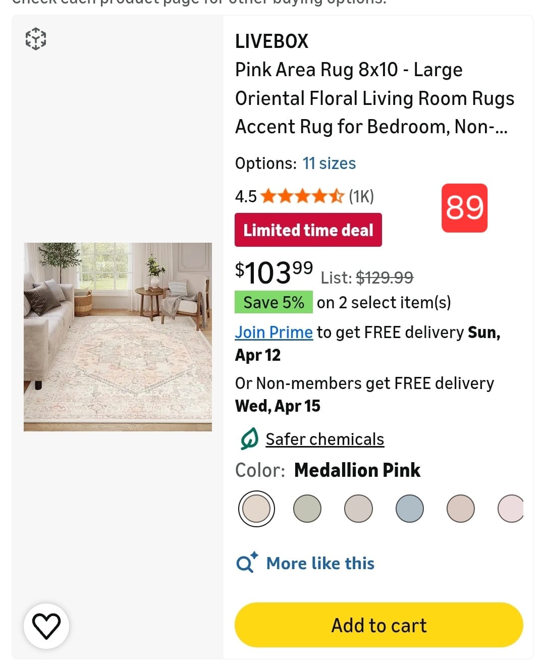 LIVEBOX Pink Area Rug 8x10 - Large Oriental Floral Living Room Rugs Accent Rug for Bedroom, Non-... 89