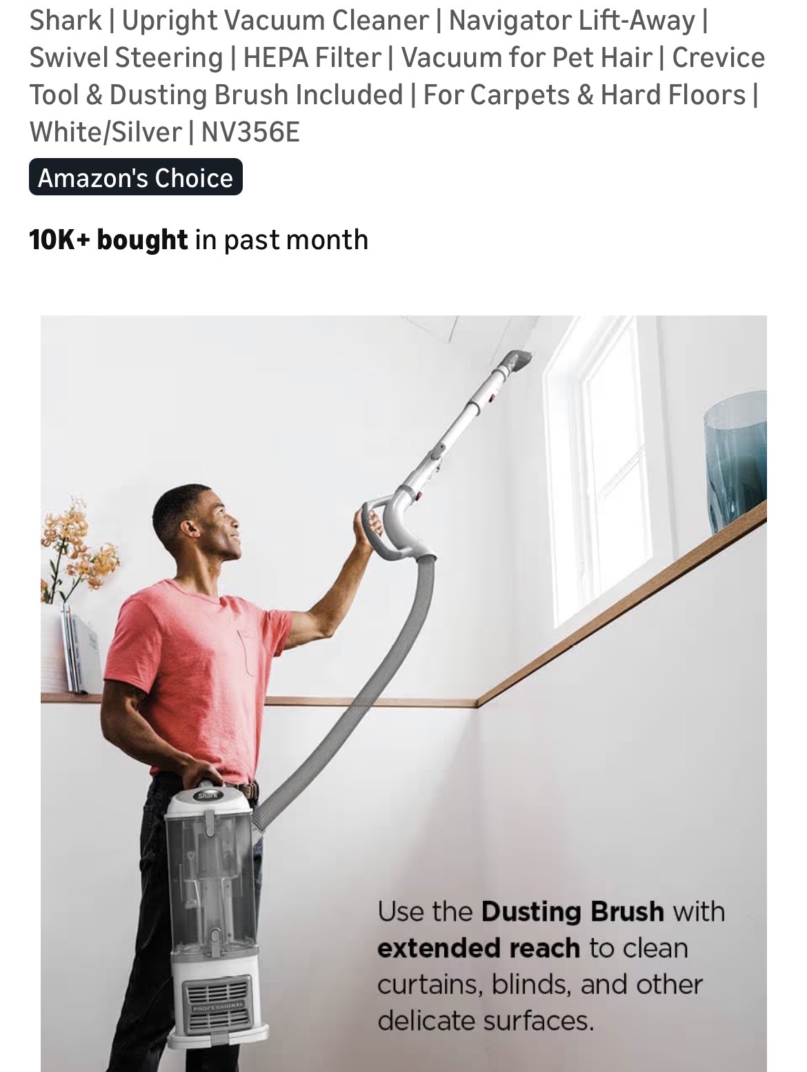 Shark | Upright Vacuum Cleaner | Navigator Lift-Away | Swivel Steering | HEPA Filter | Vacuum for Pet Hair | Crevice Tool & Dusting Brush Included | For Carpets & Hard Floors | White/Silver | NV356E #B5