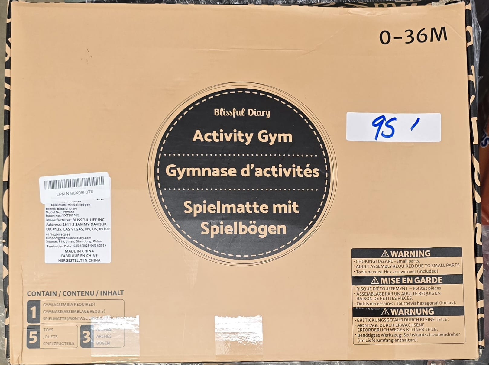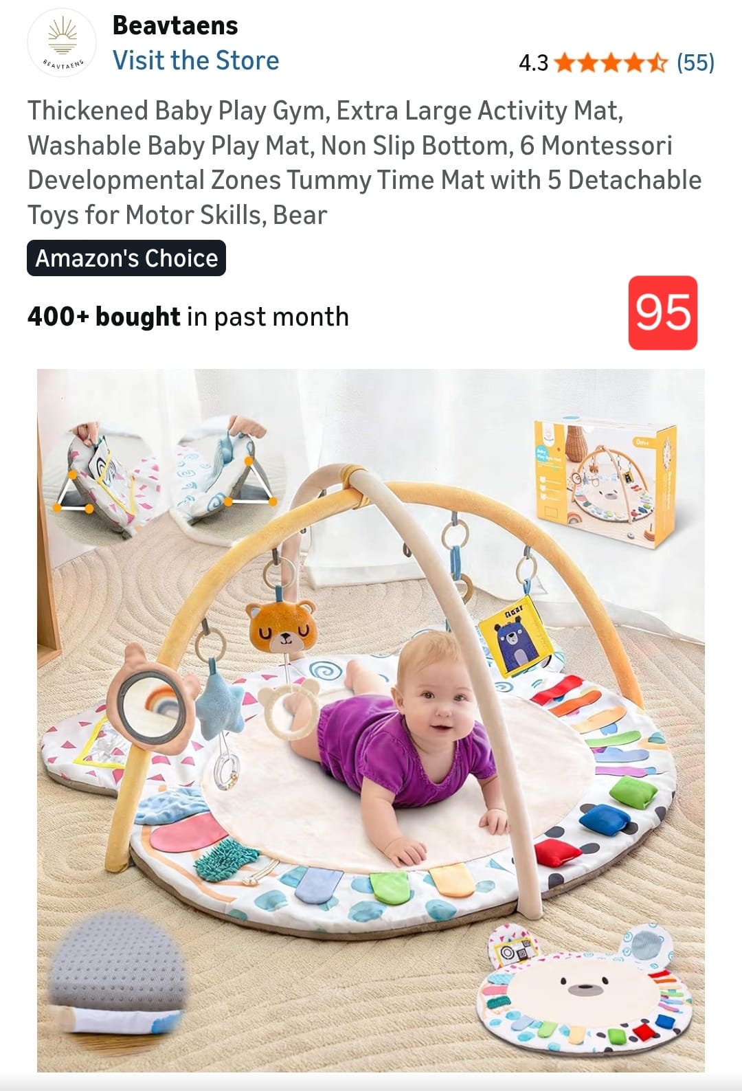 Thickened Baby Play Gym, Extra Large Activity Mat, Washable Baby Play Mat, Non Slip Bottom, 6 Montessori Developmental Zones Tummy Time Mat with 5 Detachable Toys for Motor Skills, Bear. 95