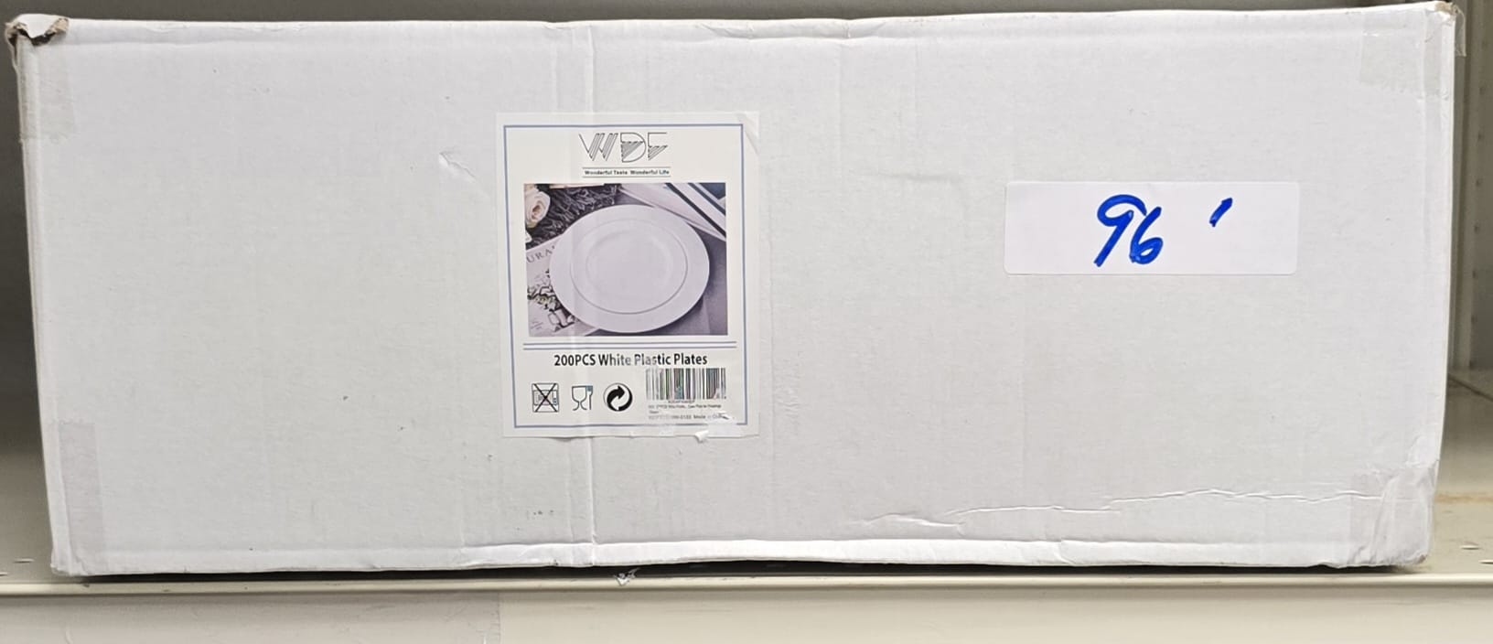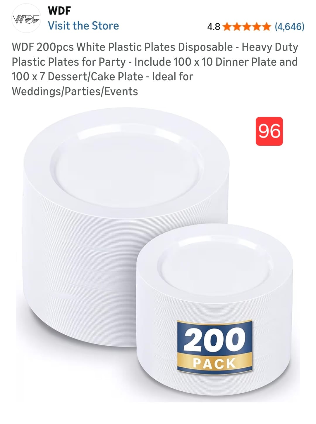 WDF 200pcs White Plastic Plates Disposable - Heavy Duty Plastic Plates for Party - Include 100 x 10 Dinner Plate and 100 x 7 Dessert/Cake Plate - Ideal for Weddings/Parties/Events. 96