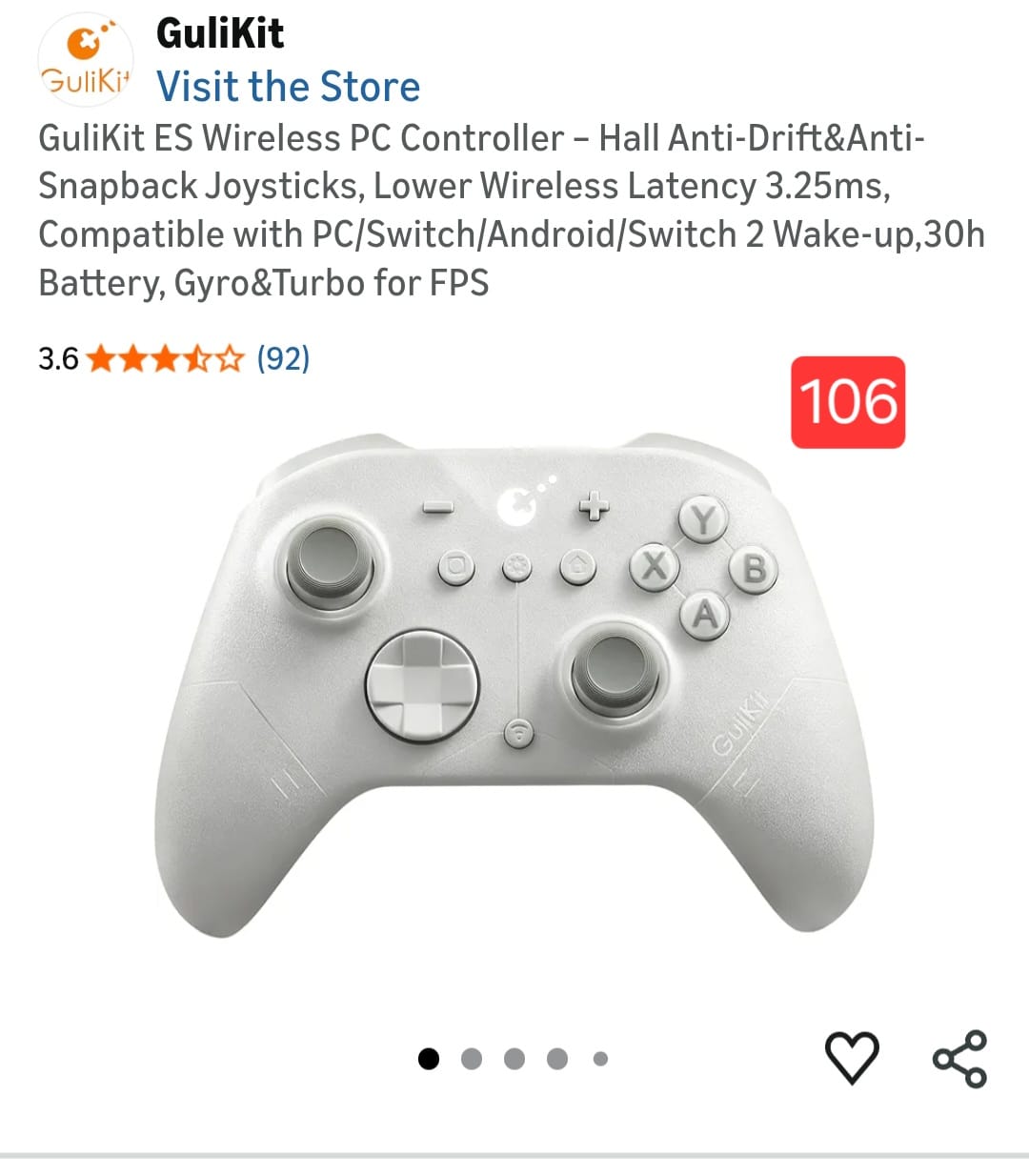 GuliKit ES Wireless PC Controller - Hall Anti-Drift&Anti-Snapback Joysticks, Lower Wireless Latency 3.25ms, Compatible with PC/Switch/Android/Switch 2 Wake-up,30h Battery, Gyro&Turbo for FPS. 106