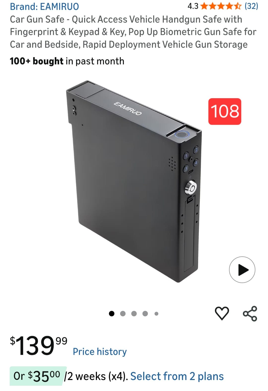 Car Gun Safe - Quick Access Vehicle Handgun Safe with Fingerprint & Keypad & Key, Pop Up Biometric Gun Safe for Car and Bedside, Rapid Deployment Vehicle Gun Storage. 108