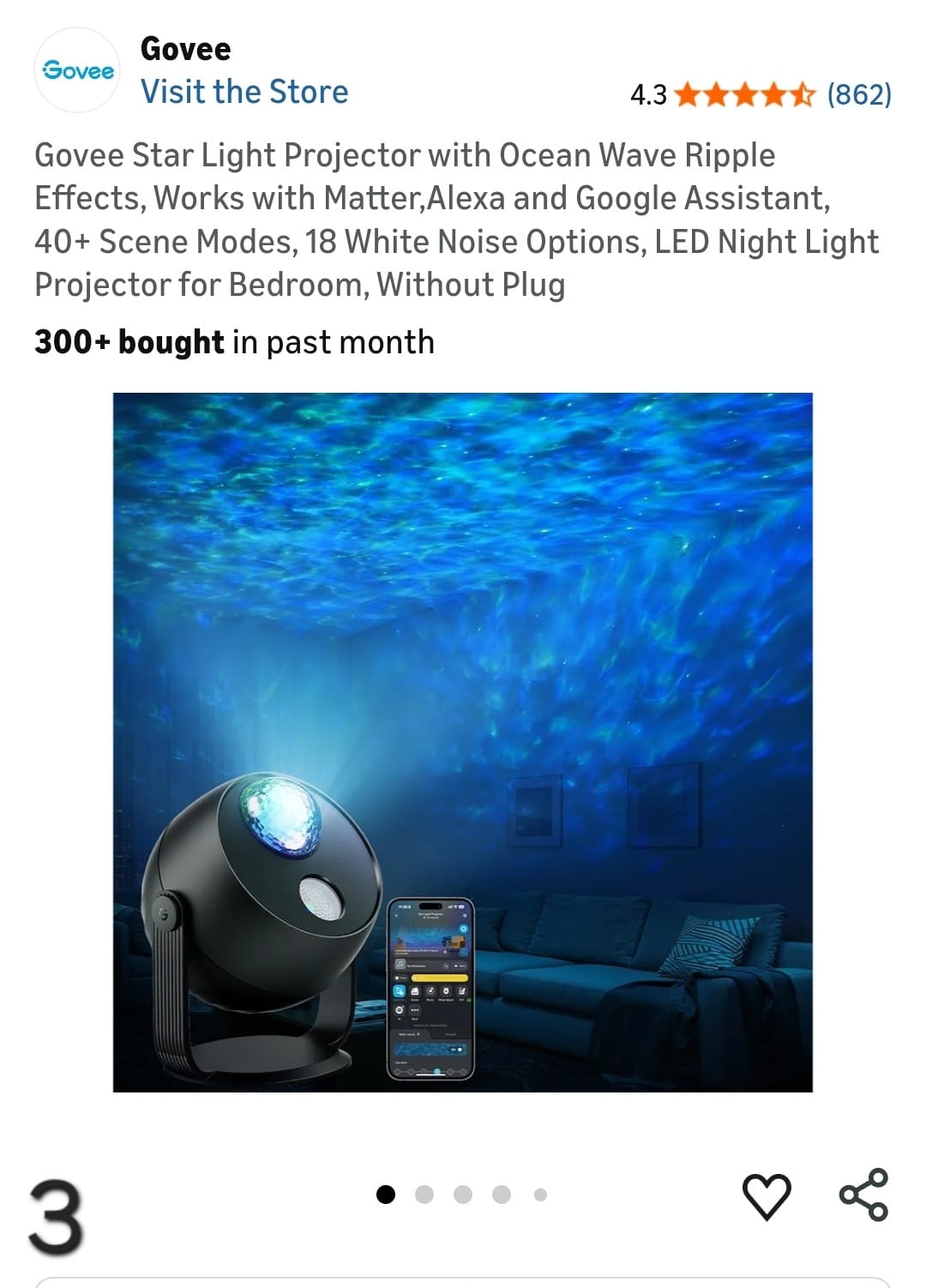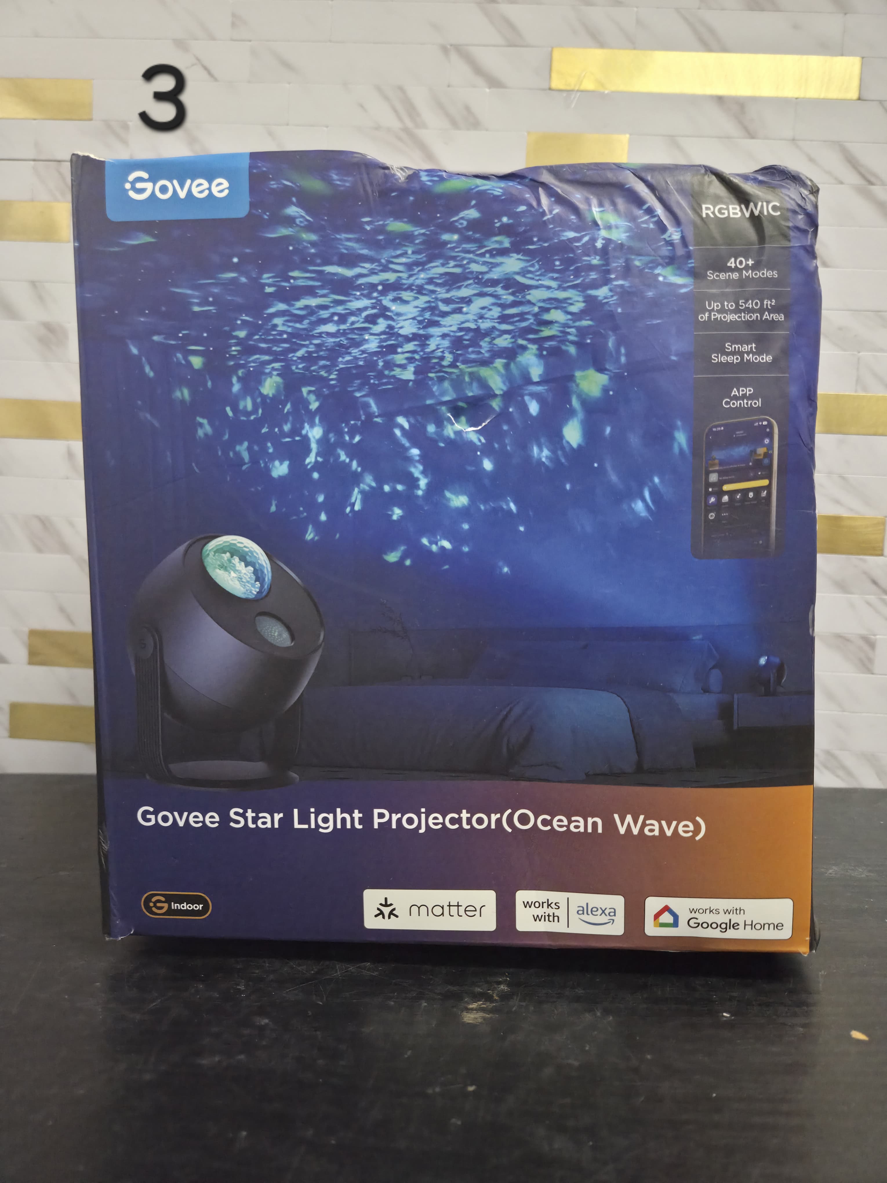 Govee Star Light Projector with Ocean Wave Ripple Effects, Works with Matter, Alexa and Google Assistant, 40+ Scene Modes, 18 White Noise Options, LED Night Light Projector for Bedroom, Without Plug. Lv3