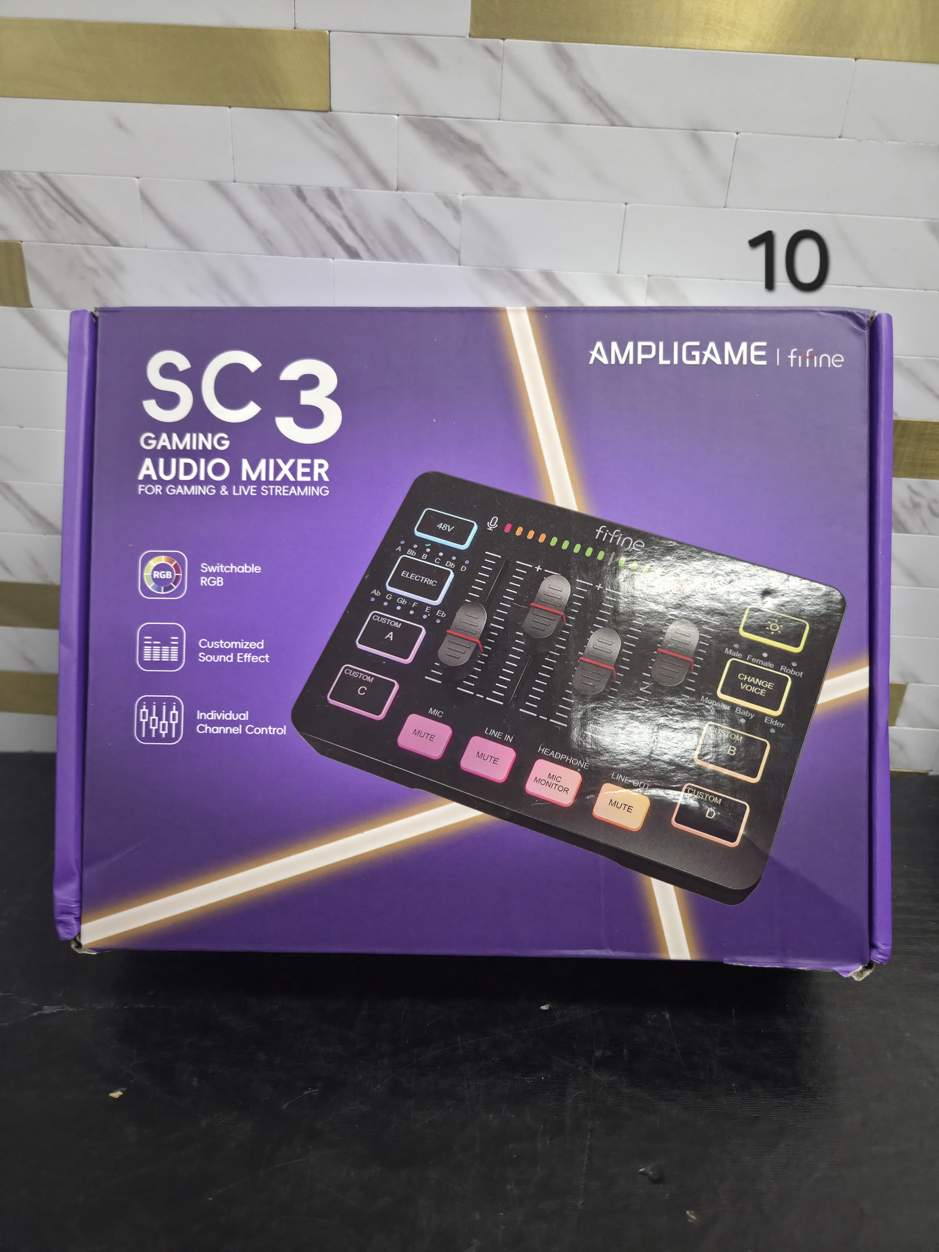 FIFINE Gaming Audio Mixer, Streaming RGB PC Mixer with XLR Microphone Interface, Individual Control, Volume Fader, Mute Button, 48V Phantom Power, for Podcast/Recording/Vocal/Game Voice-AmpliGame SC3. Lv10