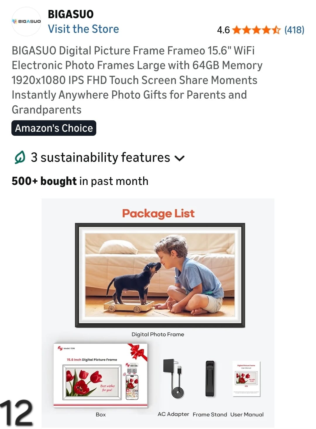 BIGASUO Digital Picture Frame Frameo 15.6" WiFi Electronic Photo Frames Large with 64GB Memory 1920x1080 IPS FHD Touch Screen Share Moments Instantly Anywhere Photo Gifts for Parents and Grandparents. Lv12