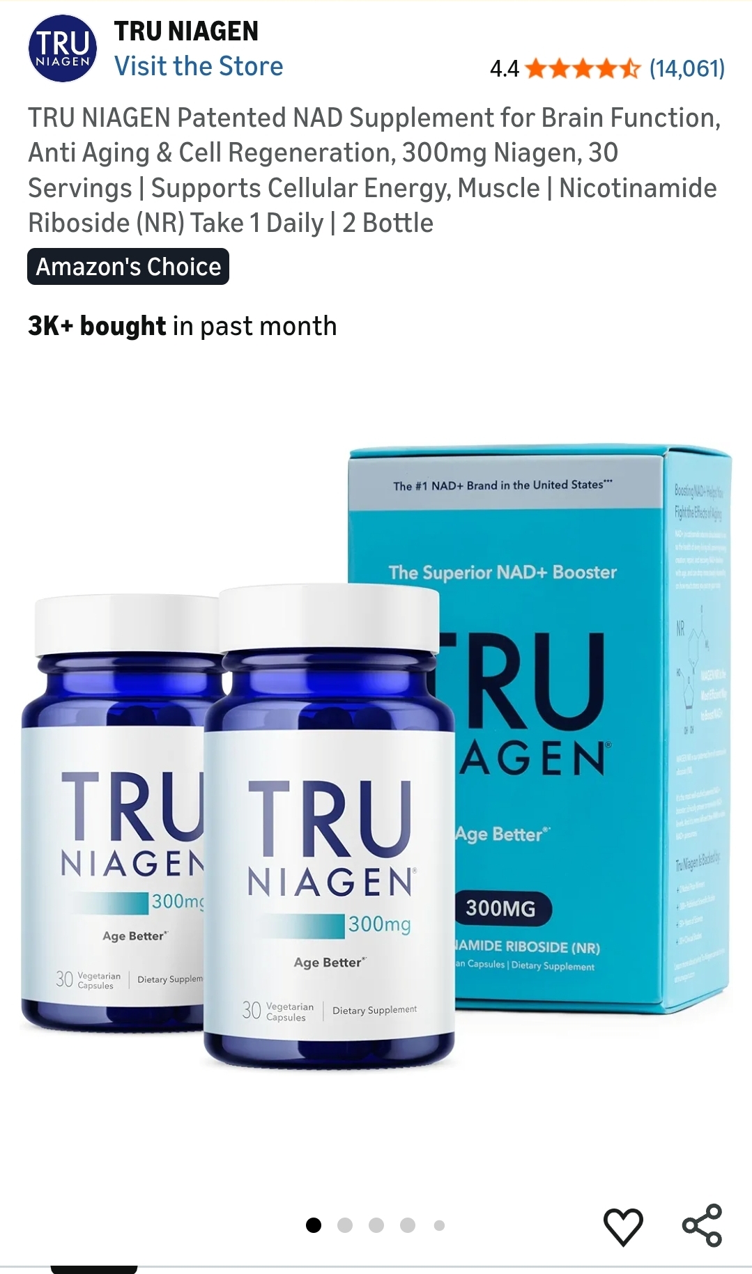 TRU NIAGEN Patented NAD Supplement for Brain Function, Servings | Supports Cellular Energy, Muscle | Nicotinamide Riboside (NR) Take 1 Daily | 2 Bottle. Lv22