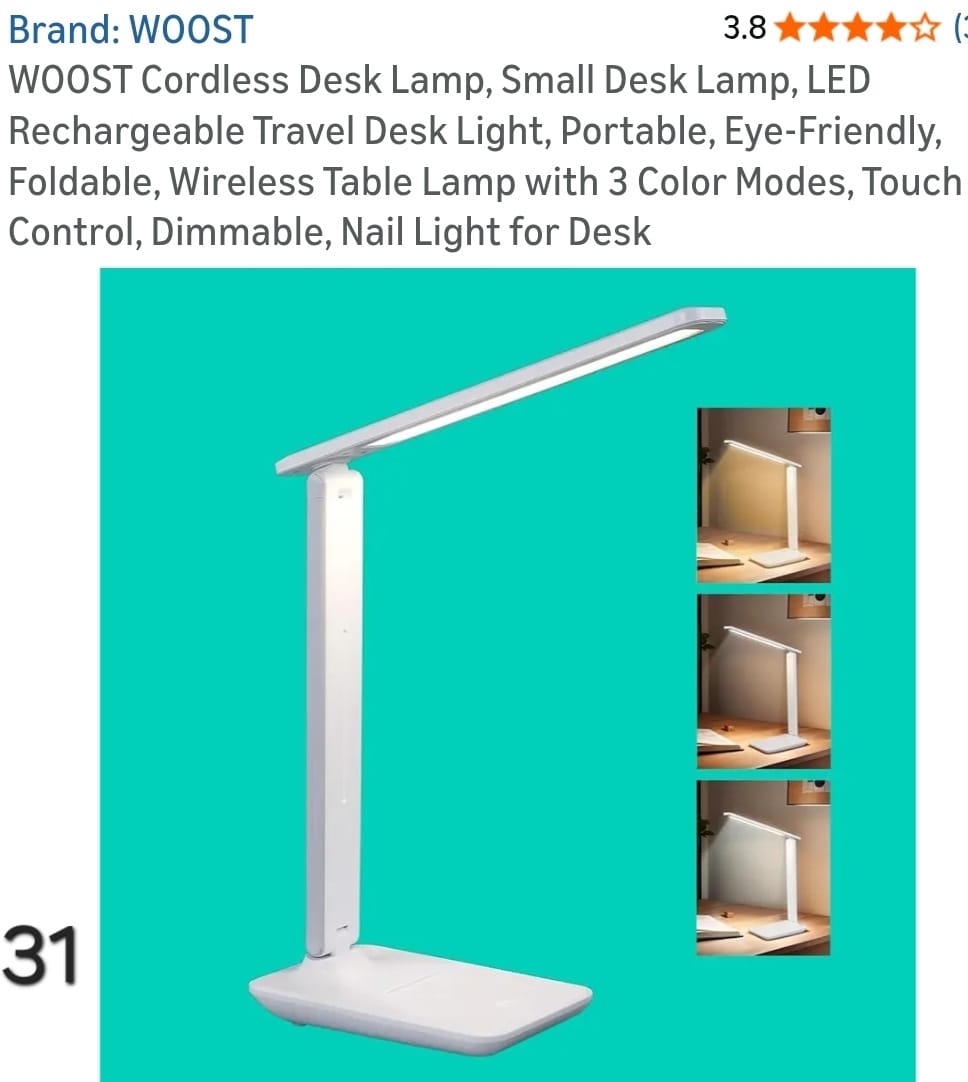 WOOST Cordless Desk Lamp, Small Desk Lamp, LED Rechargeable Travel Desk Light, Portable, Eye-Friendly, Foldable, Wireless Table Lamp with 3 Color Modes, Touch Control, Dimmable, Nail Light for Desk. Lv31
