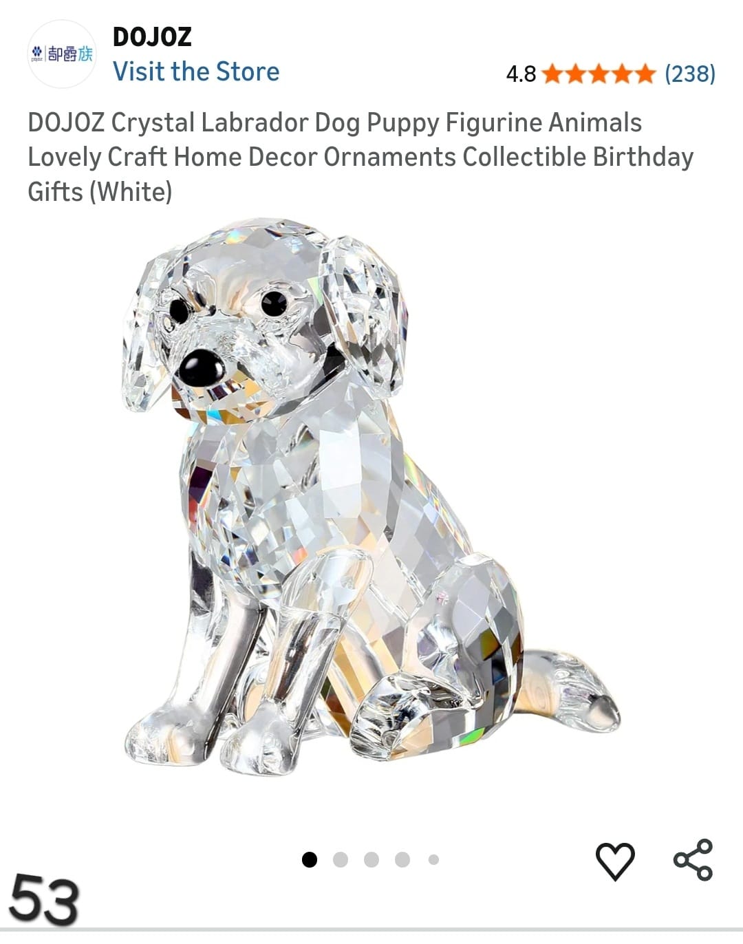 DOJOZ Crystal Labrador Dog Puppy Figurine Animals Lovely Craft Home Decor Ornaments Collectible Birthday Gifts (White). Lv53