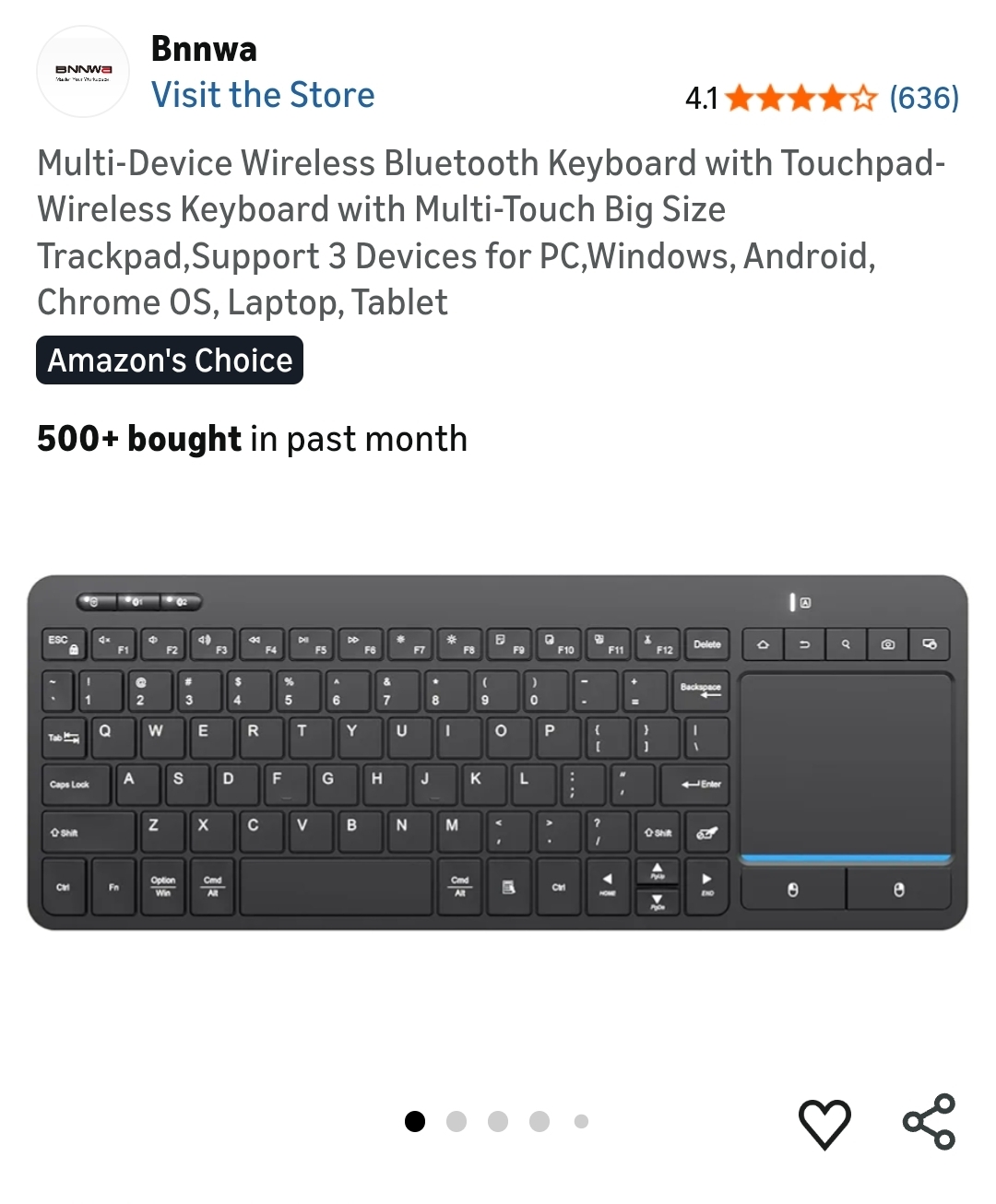 Multi-Device Wireless Bluetooth Keyboard with Touchpad-Trackpad, Support 3 Devices for PC, Windows, Android, Chrome OS, Laptop, Tablet. Lv59