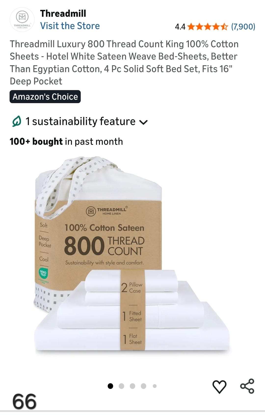 Threadmill Luxury 800 Thread Count King 100% Cotton Sheets - Hotel White Sateen Weave Bed-Sheets, Better Than Egyptian Cotton, 4 Pc Solid Soft Bed Set, Fits 16" Deep Pocket. Lv66