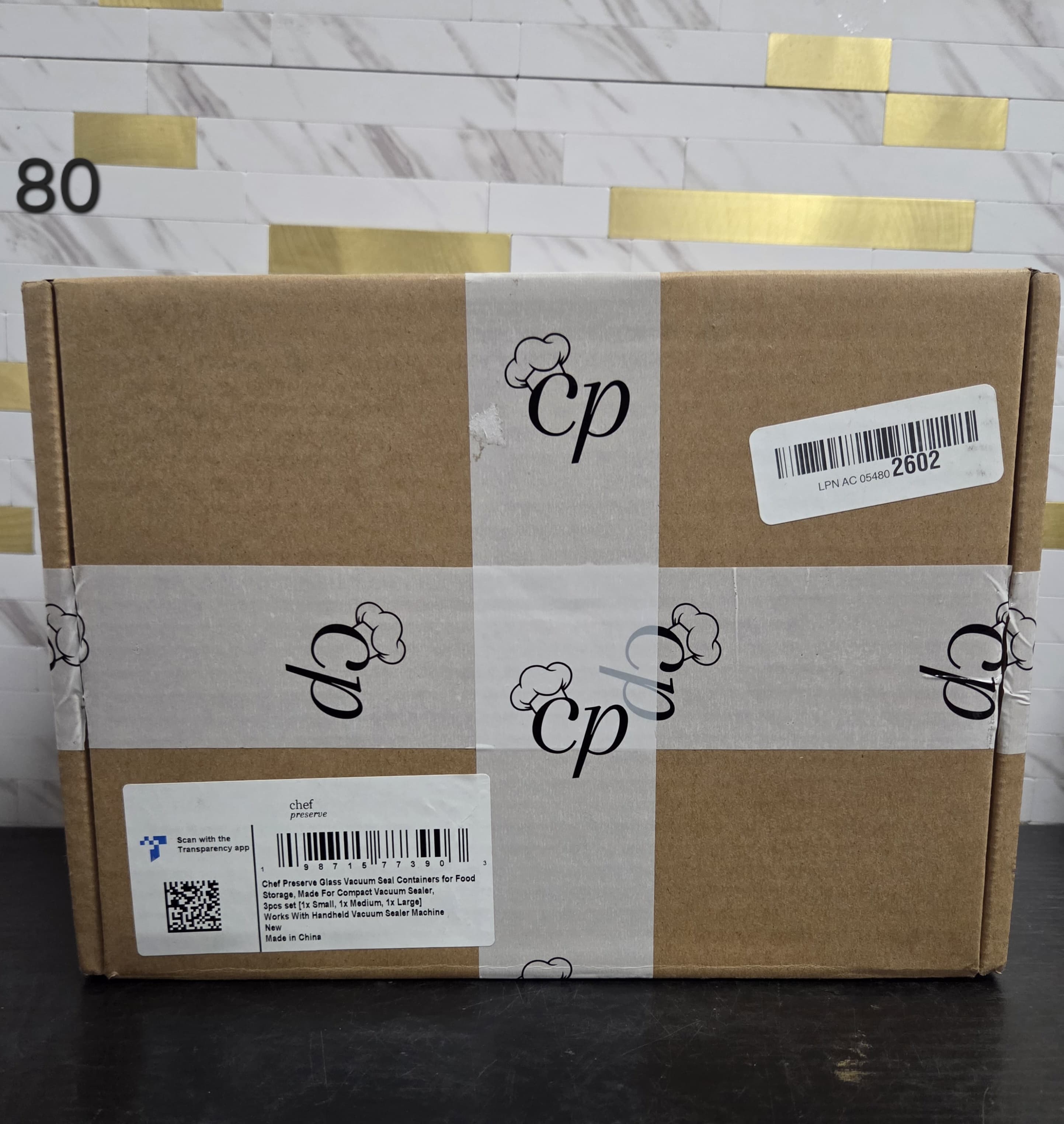 Chef Preserve Glass Vacuum Seal Containers for Food Storage, Made For Compact Vacuum Sealer, 3pcs set [1x Small, 1x Medium, 1x Large] Works With Handheld Vacuum Sealer Machine. Lv80