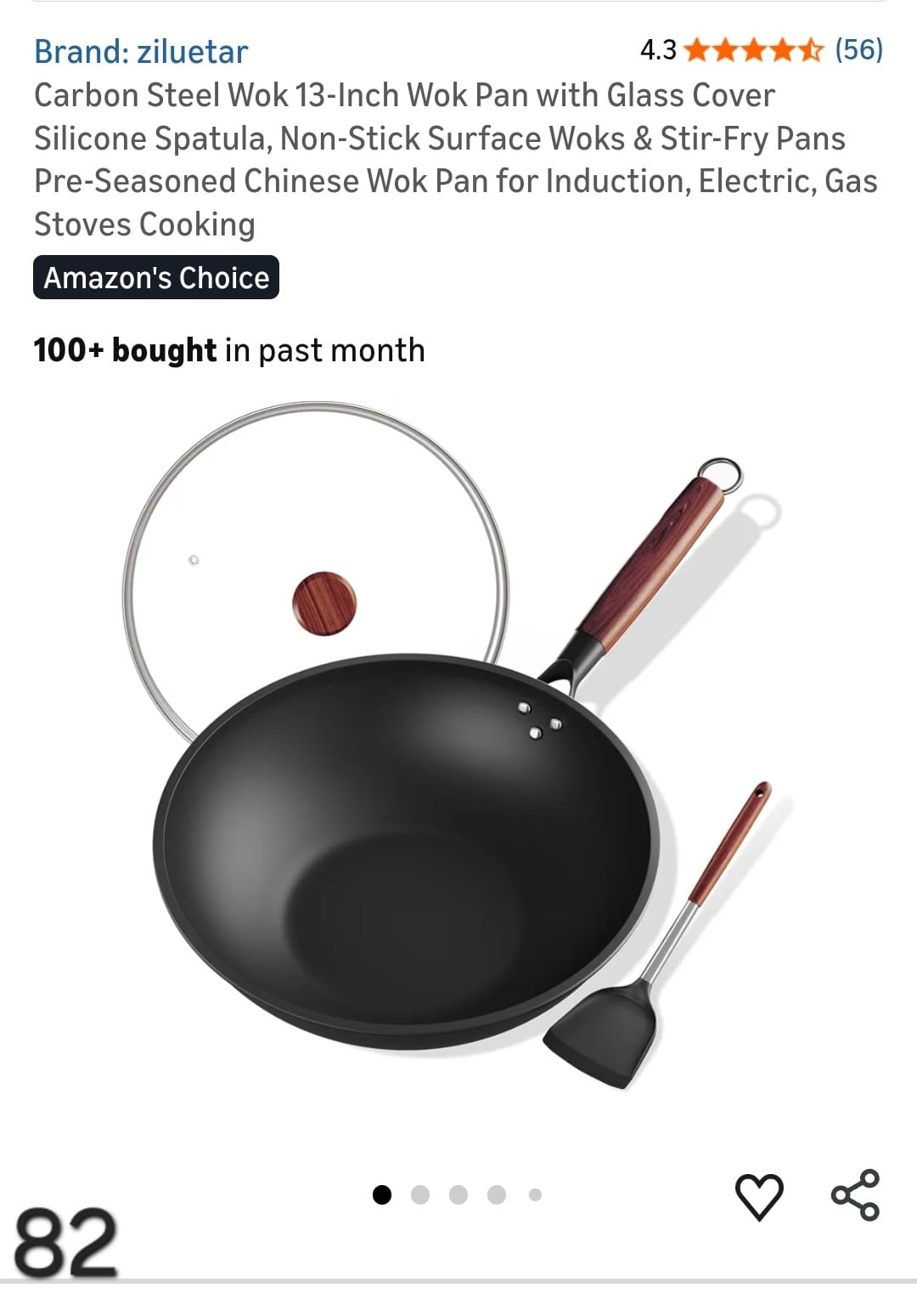 Carbon Steel Wok 13-Inch Wok Pan with Glass Cover Silicone Spatula, Non-Stick Surface Woks & Stir-Fry Pans Pre-Seasoned Chinese Wok Pan for Induction, Electric, Gas Stoves Cooking. Lv82