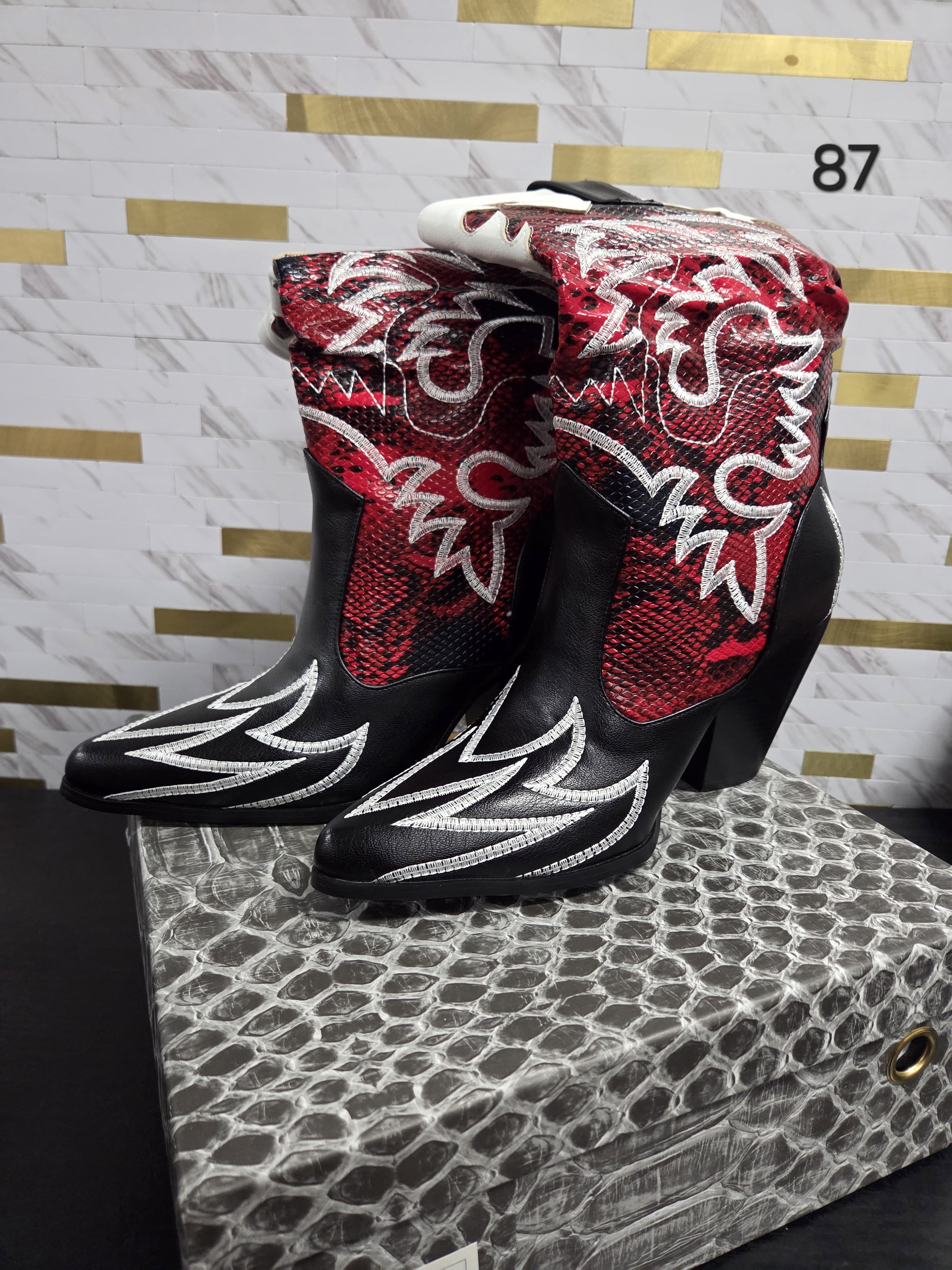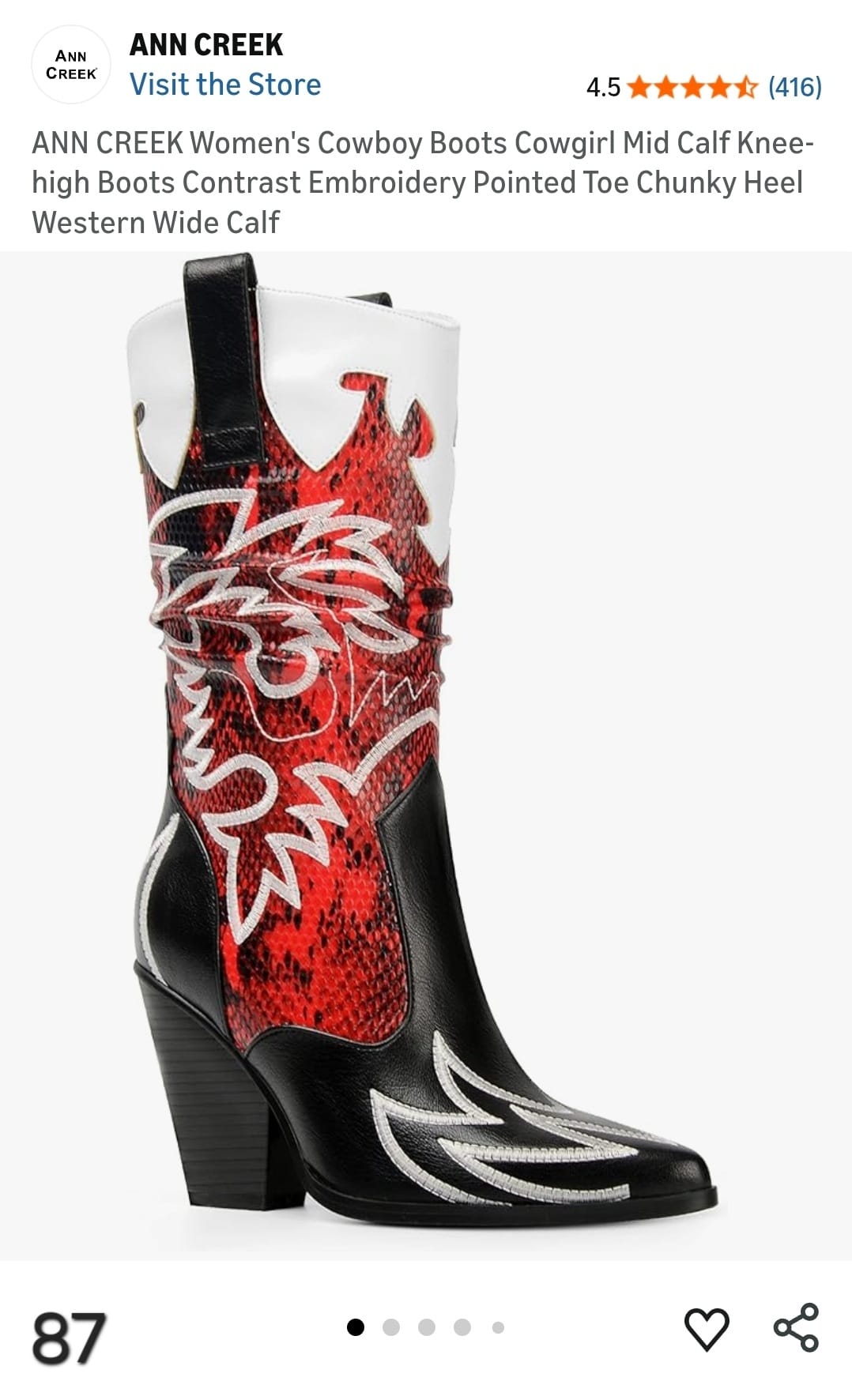 ANN CREEK Women's Cowboy Boots Cowgirl Mid Calf Knee-high Boots Contrast Embroidery Pointed Toe Chunky Heel Western Wide Calf SIZE 9,5. Lv87