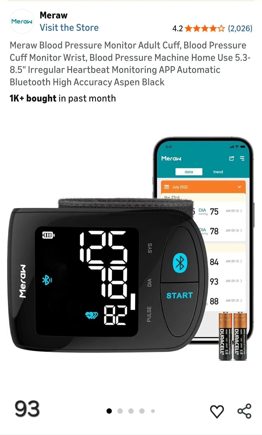 Meraw Blood Pressure Monitor Adult Cuff, Blood Pressure Cuff Monitor Wrist, Blood Pressure Machine Home Use 5.3-8.5" Irregular Heartbeat Monitoring APP Automatic Bluetooth High Accuracy Aspen Black. Lv93