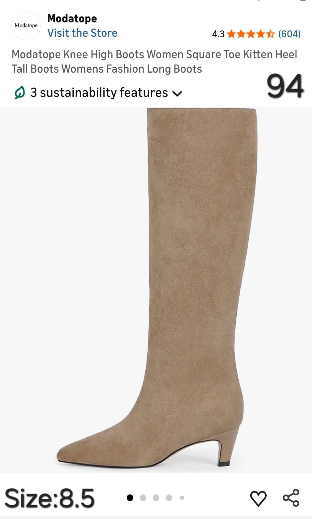 Modatope Knee High Boots Women Square Toe Kitten Heel Tall Boots Womens Fashion Long Boots SIZE 8,5. Lv94