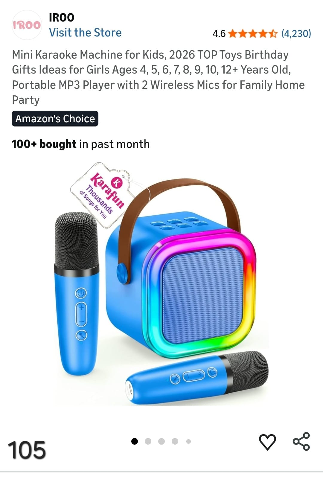 Mini Karaoke Machine for Kids, 2026 TOP Toys Birthday Gifts Ideas for Girls Ages 4, 5, 6, 7, 8, 9, 10, 12+ Years Old, Portable MP3 Player with 2 Wireless Mics for Family Home Party. Lv105