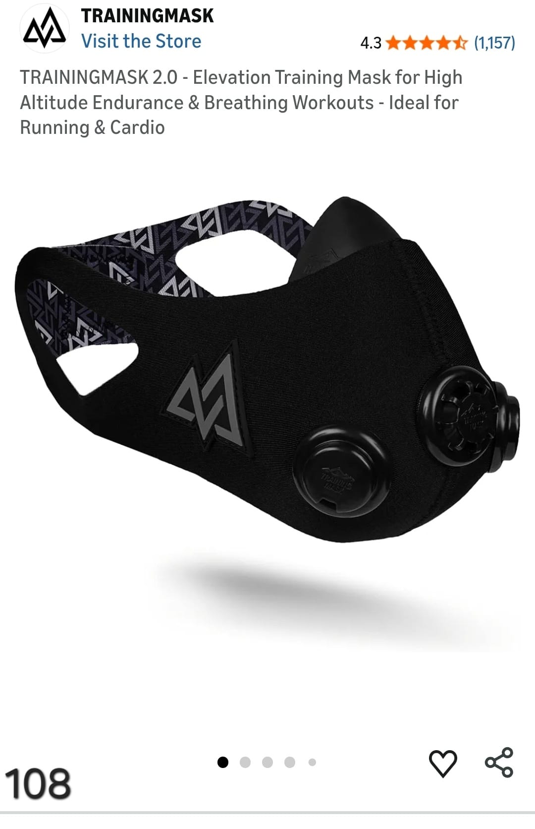 TRAININGMASK 2.0 - Elevation Training Mask for High Altitude Endurance & Breathing Workouts - Ideal for Running & Cardio. Lv108