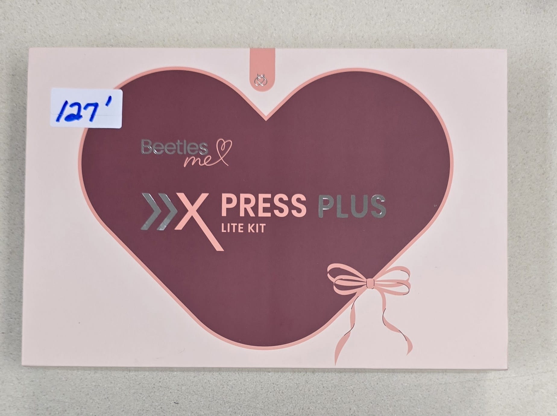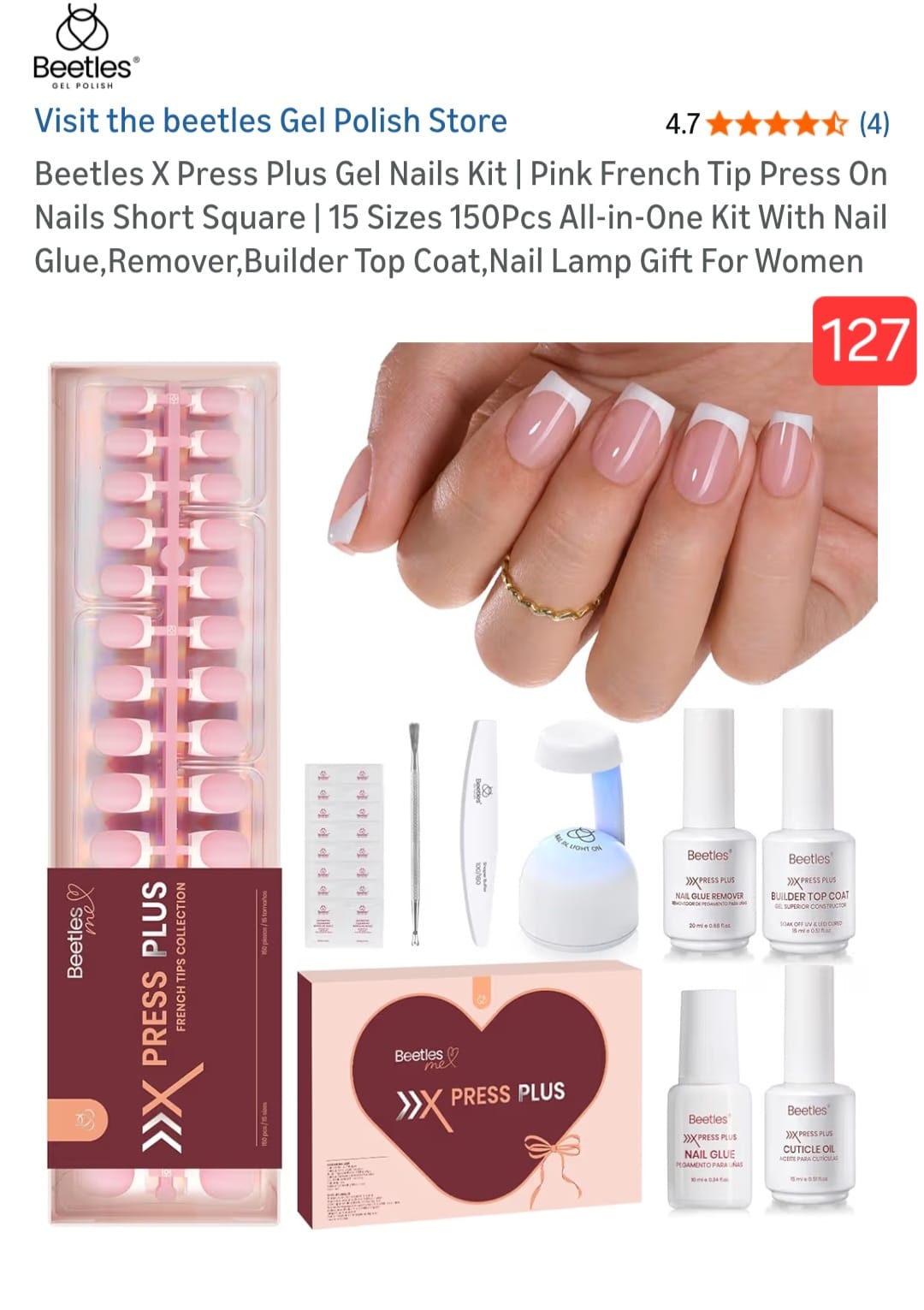 Beetles X Press Plus Gel Nails Kit | Pink French Tip Press On Nails Short Square. 127 | 15 Sizes 150Pcs All-in-One Kit With Nail Glue, Remover, Builder Top Coat, Nail Lamp Gift For Women. 127
