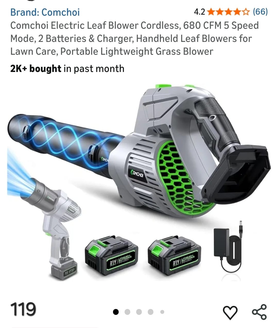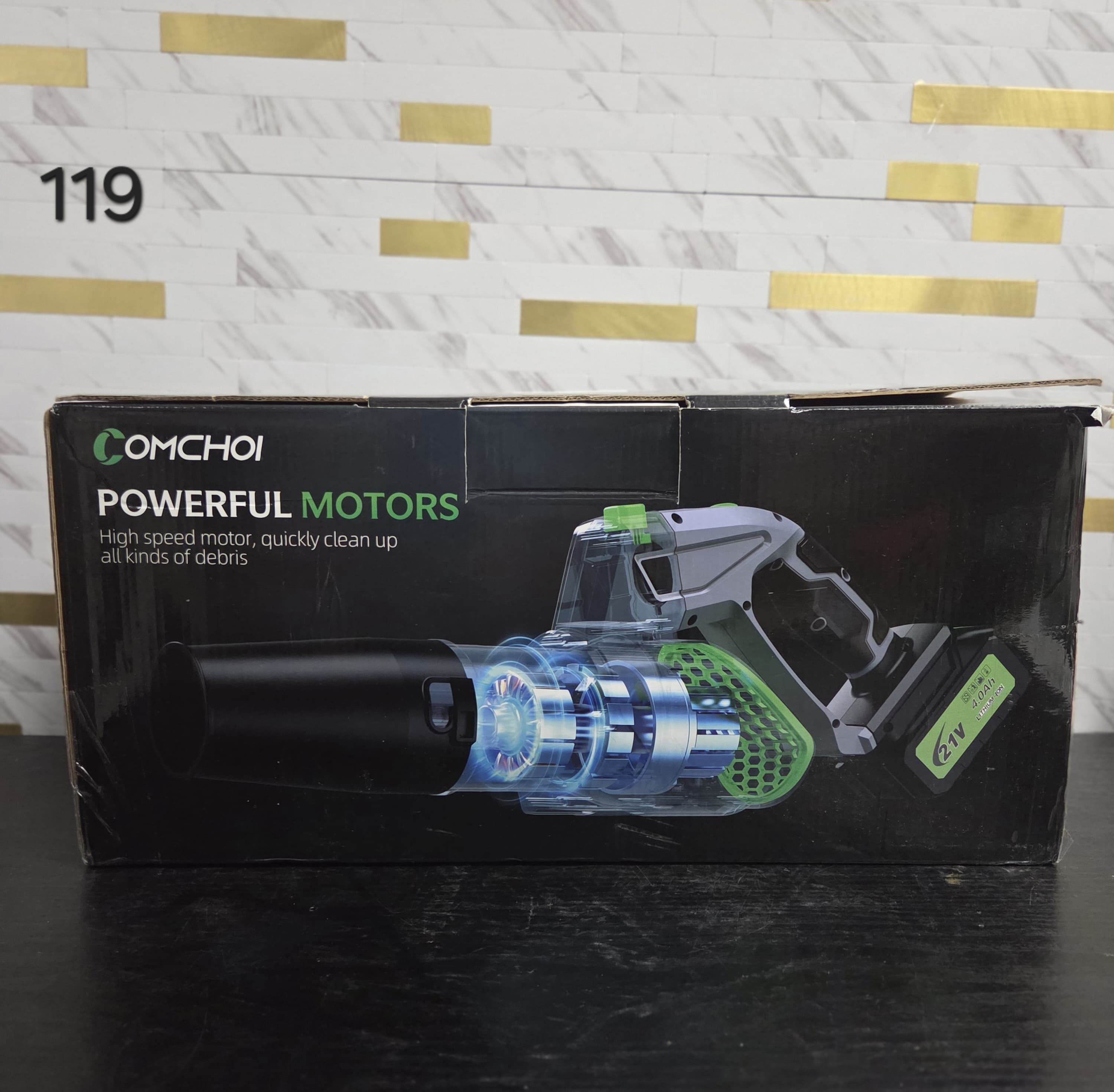 Comchoi Electric Leaf Blower Cordless, 680 CFM 5 Speed Mode, 2 Batteries & Charger, Handheld Leaf Blowers for Lawn Care, Portable Lightweight Grass Blower. Lv119