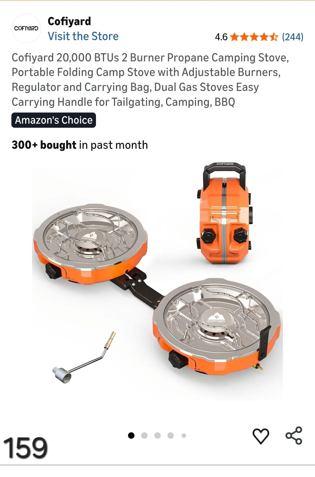Cofiyard 20,000 BTUs 2 Burner Propane Camping Stove, Portable Folding Camp Stove with Adjustable Burners, Regulator and Carrying Bag, Dual Gas Stoves Easy Carrying Handle for Tailgating, Camping, BBQ. Lv159
