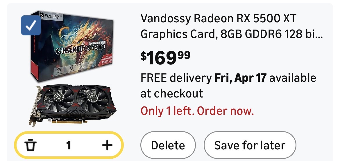 Radeon RX 5500 XT Graphics Card, 8GB GDDR6 128 bit RDNA Architecture #B46