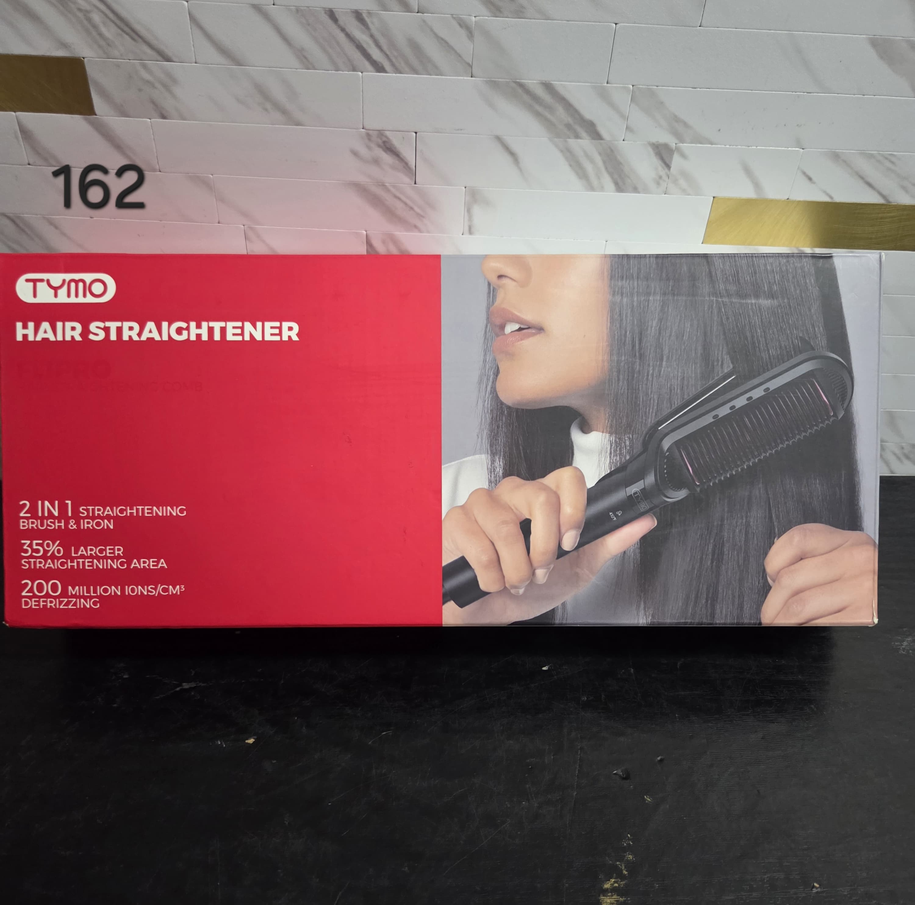 TYMO Flat Iron Hair Straightener Brush 2 in 1, 200M lons Hair Straighteners for Women, Ceramic Straightening Hot Comb for Anti-Frizz Straights, Waves, Curl, 3X Less Heat Damage, Dual Voltage, Black. Lv162