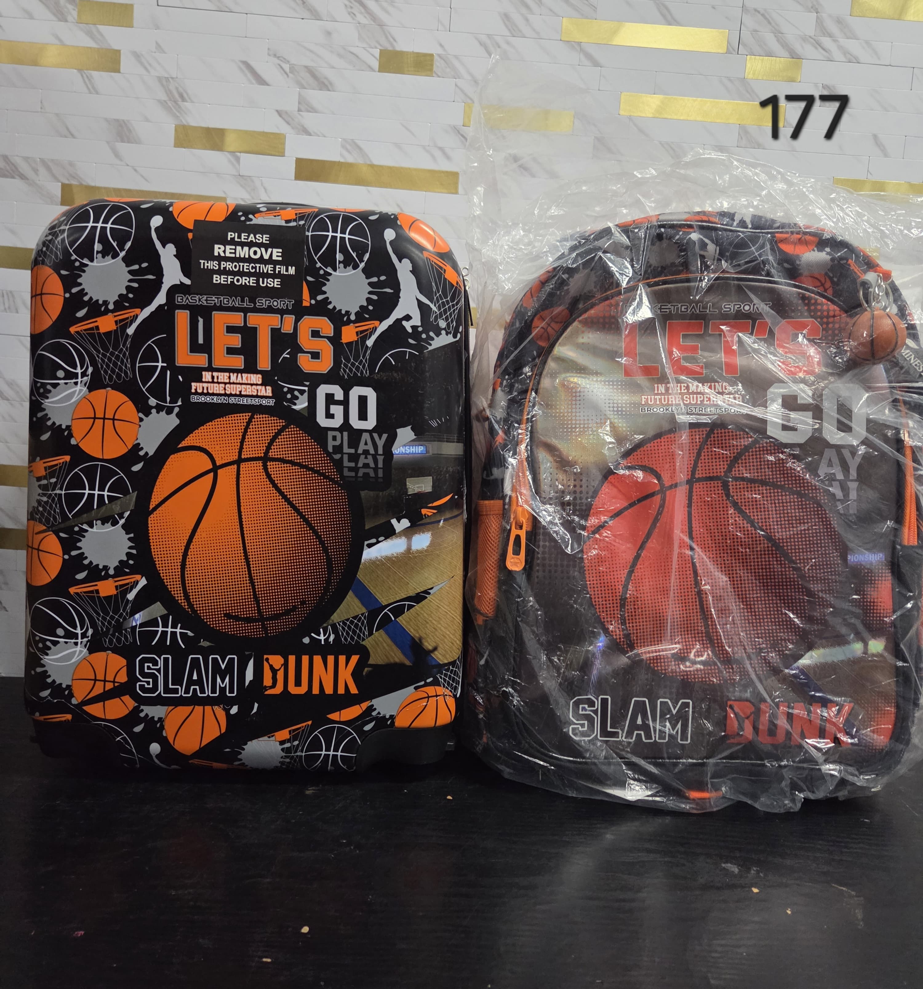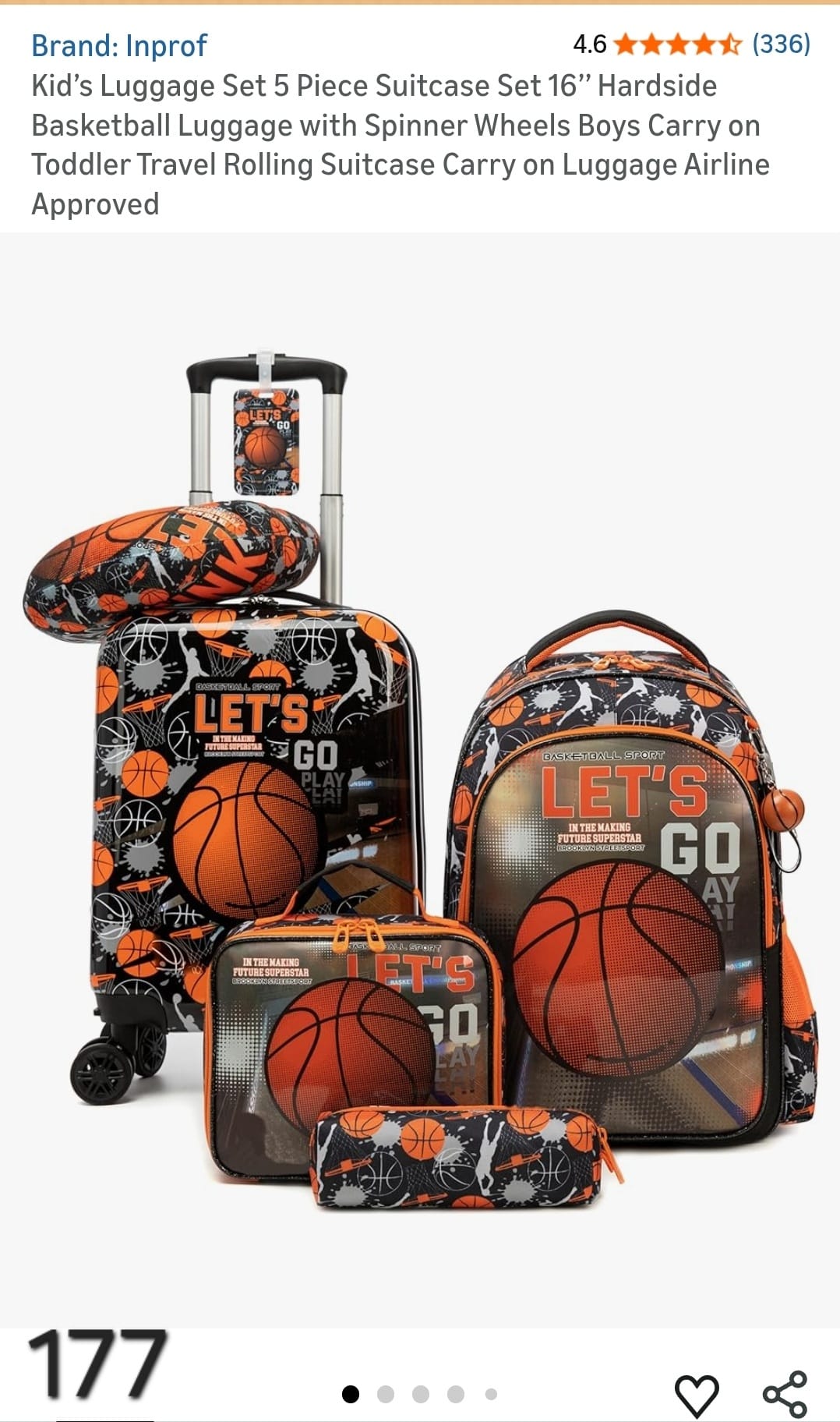 Kid's Luggage Set 5 Piece Suitcase Set 16" Hardside Basketball Luggage with Spinner Wheels Boys Carry on Toddler Travel Rolling Suitcase Carry on Luggage Airline Approved. Lv177