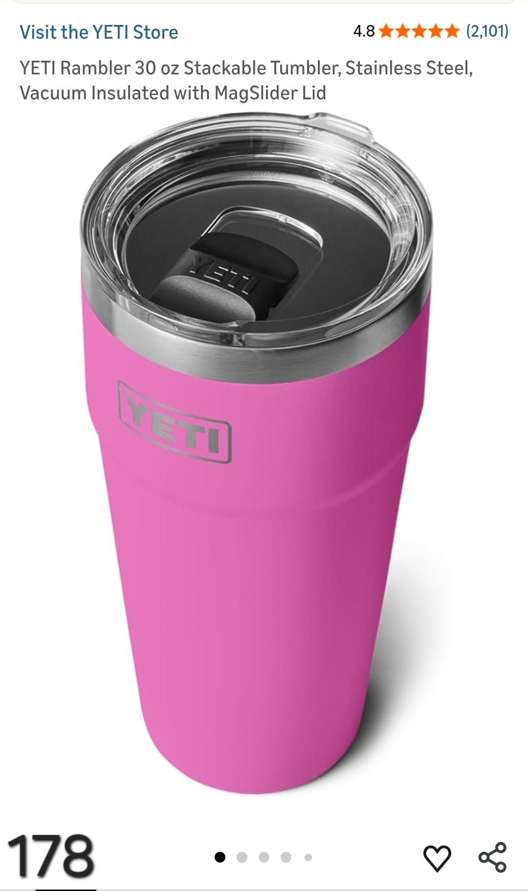 YETI Rambler 30 oz Stackable Tumbler, Stainless Steel, Vacuum Insulated with MagSlider Lid. Lv178