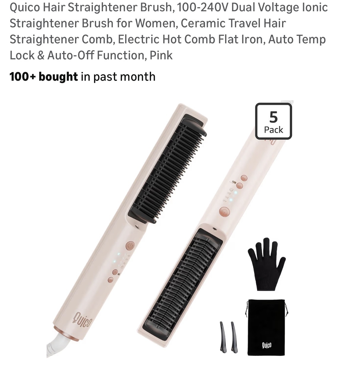 Quico Hair Straightener Brush, 100-240V Dual Voltage Ionic Straightener Brush for Women #C46