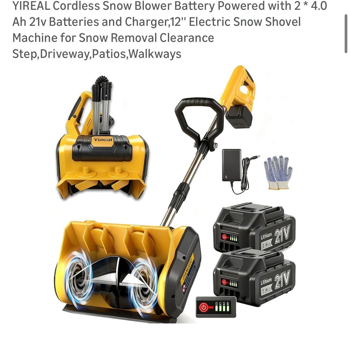 YIREAL Cordless Snow Blower Battery Powered with 2 * 4.0 Ah 21v Batteries and Charger #C48