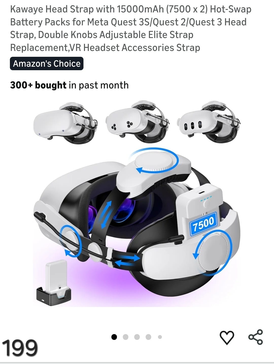 Kawaye Head Strap with 15000mAh (7500 x 2) Hot-Swap Battery Packs for Meta Quest 3S/Quest 2/Quest 3 Head Strap, Double Knobs Adjustable Elite Strap Replacement, VR Headset Accessories Strap. Lv199