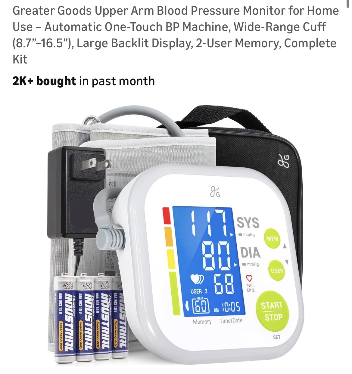 Greater Goods Upper Arm Blood Pressure Monitor for Home Use #C54