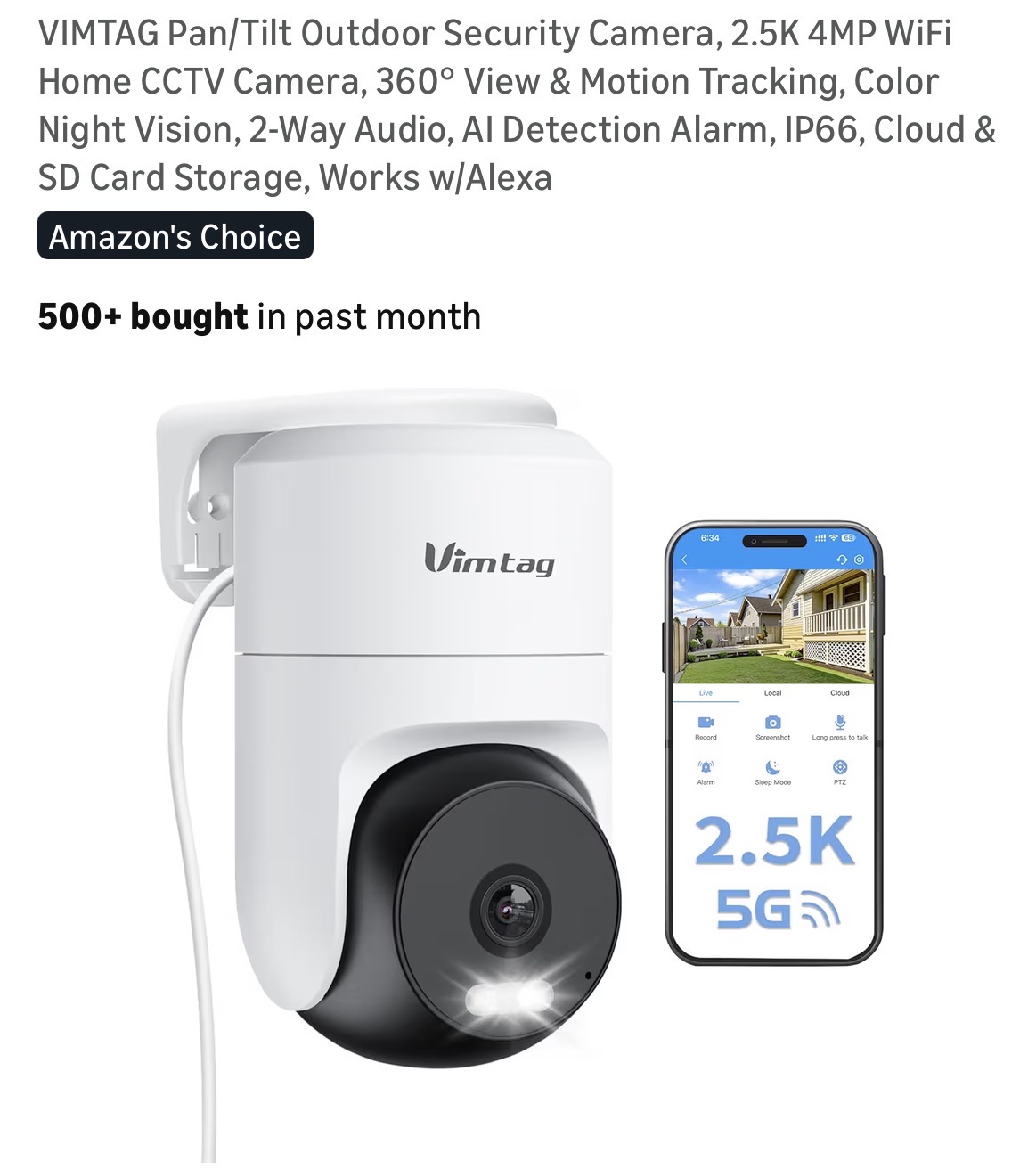 VIMTAG Pan/Tilt Outdoor Security Camera #C65
