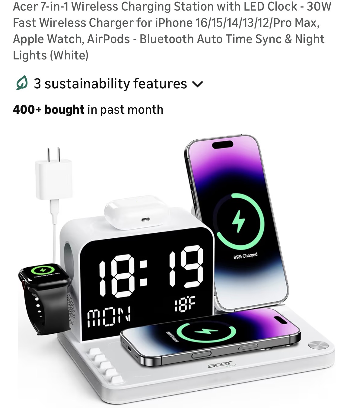Acer 7-in-1 Wireless Charging Station with LED Clock #C86