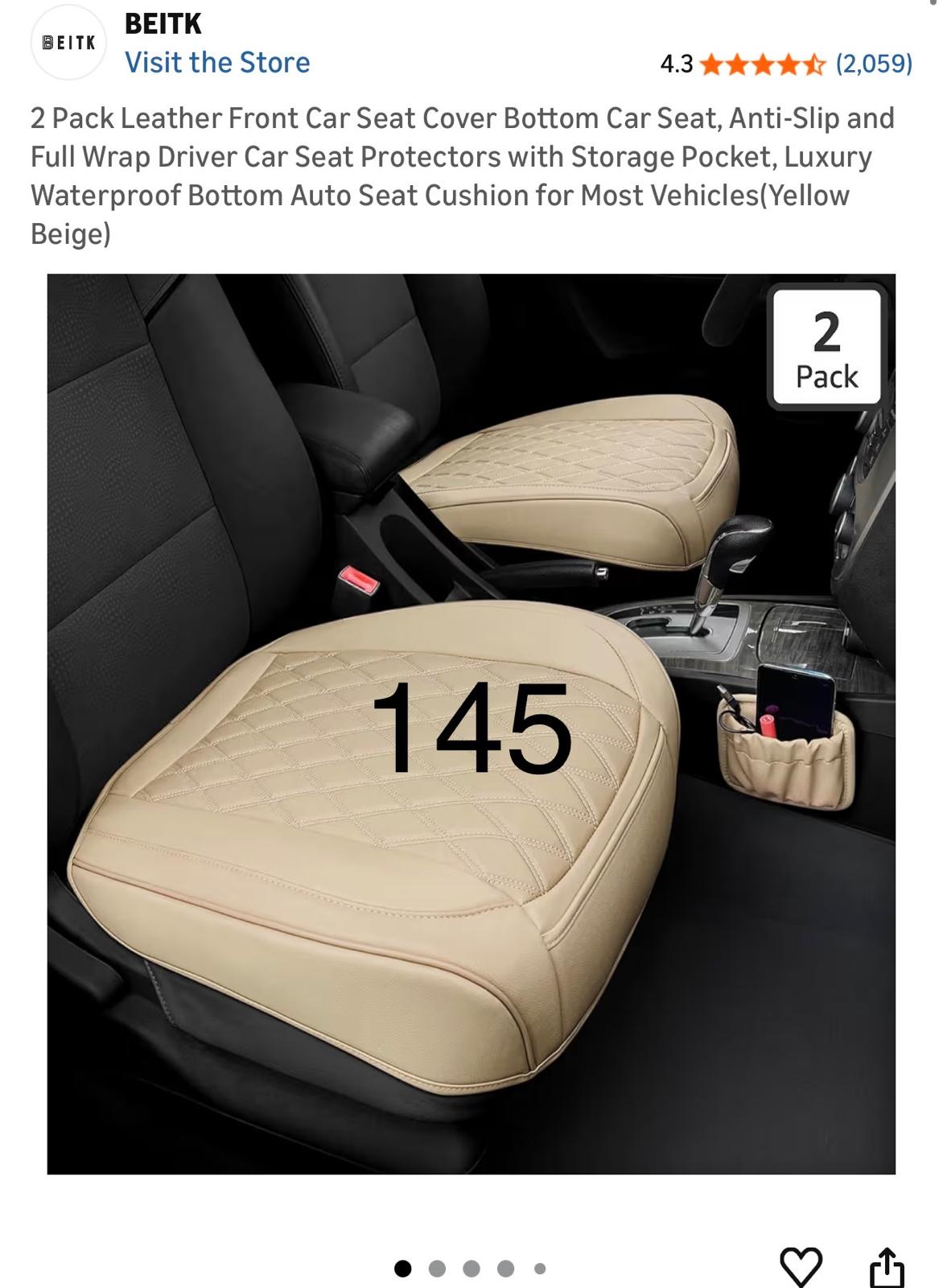 2 Pack Leather Front Car Seat Cover Bottom Car Seat, Anti-Slip and Full Wrap Driver Car Seat Protectors with Storage Pocket, Luxury Waterproof Bottom Auto Seat Cushion for Most Vehicles (Yellow Beige). 145