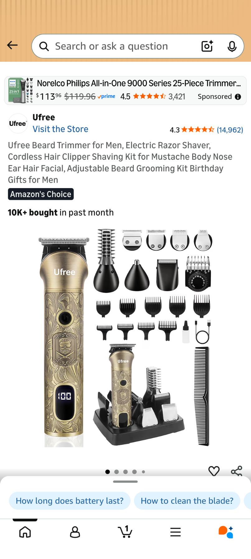 A46 Ufree Beard Trimmer for Men, Electric Razor Shaver, Cordless Hair Clipper Shaving Kit for Mustache Body Nose Ear Hair Facial, Adjustable Beard Grooming Kit